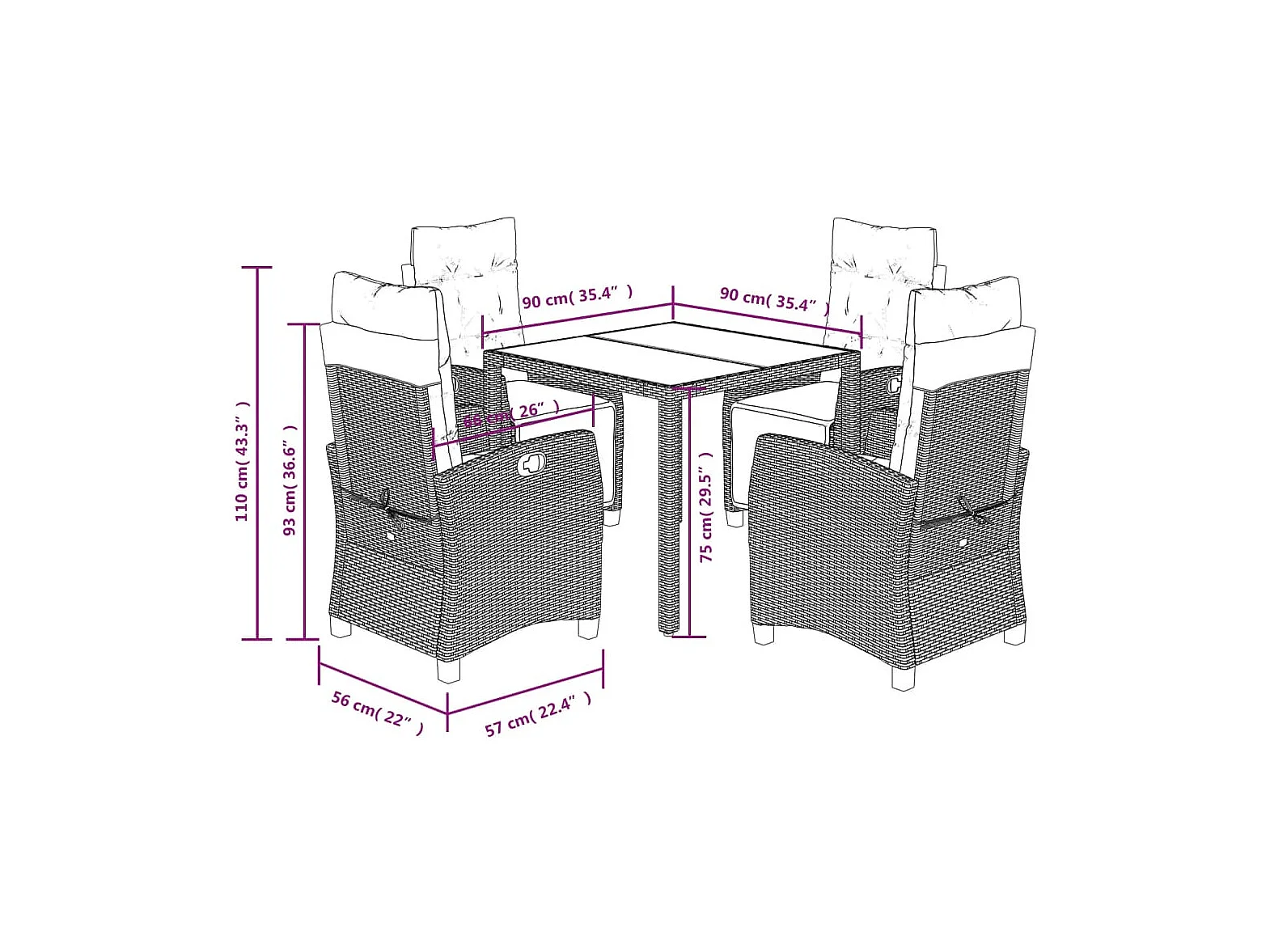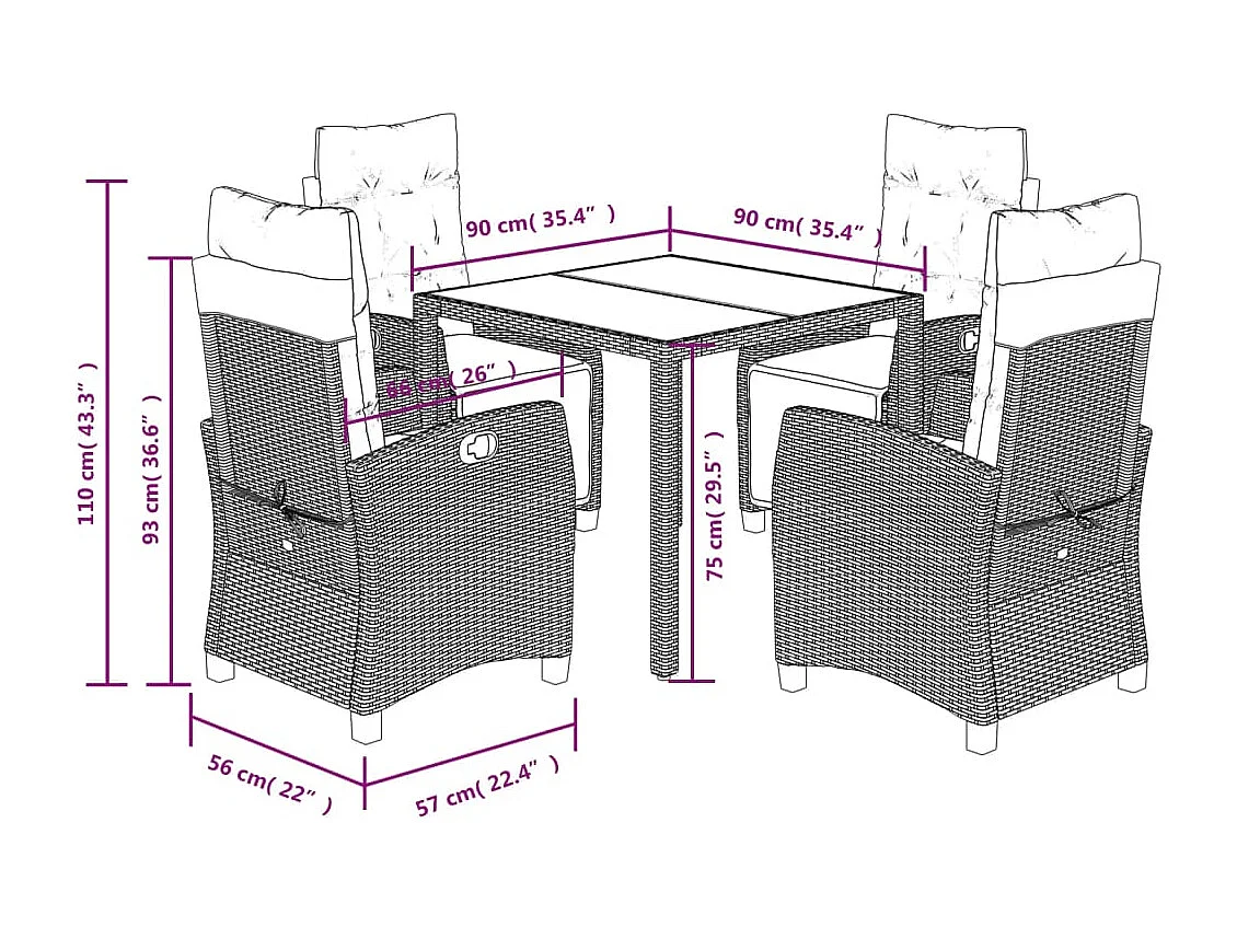 Torgryn Ensemble à manger de jardin 5 pcs coussins gris résine tressée