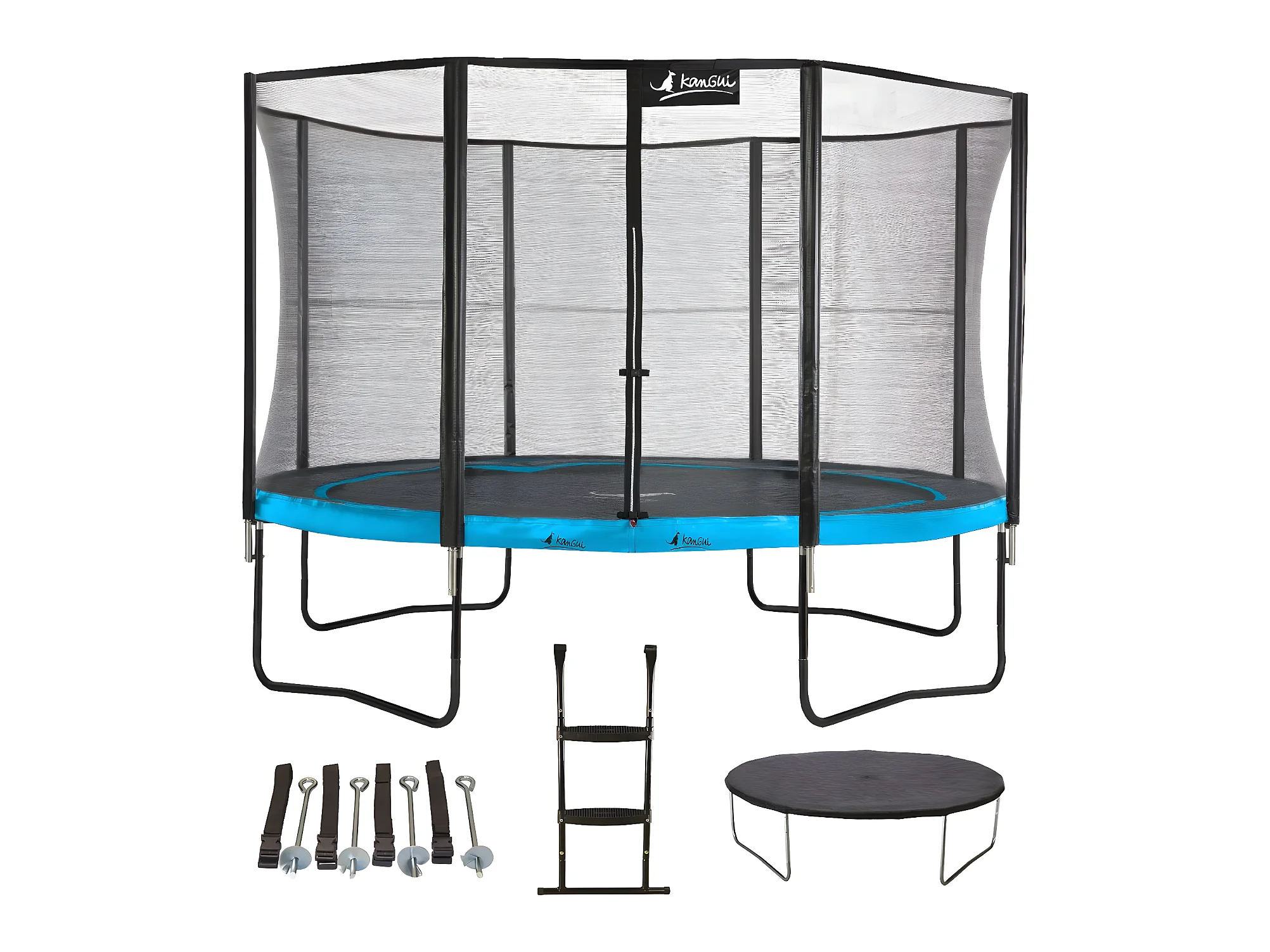 Kangui - Trampoline de jardin 365 cm + filet + échelle + bâche + kit ancrage | PUNCHI Bleu