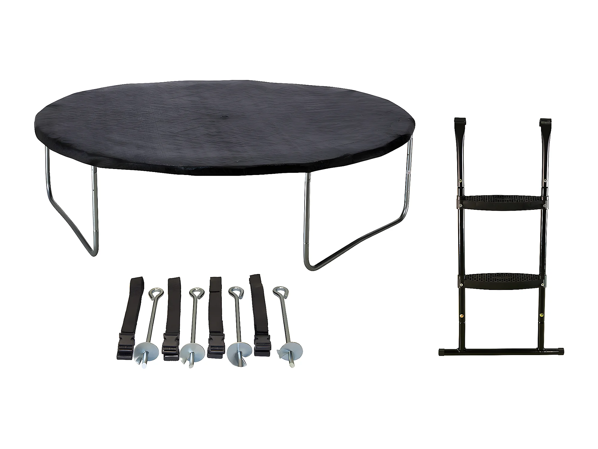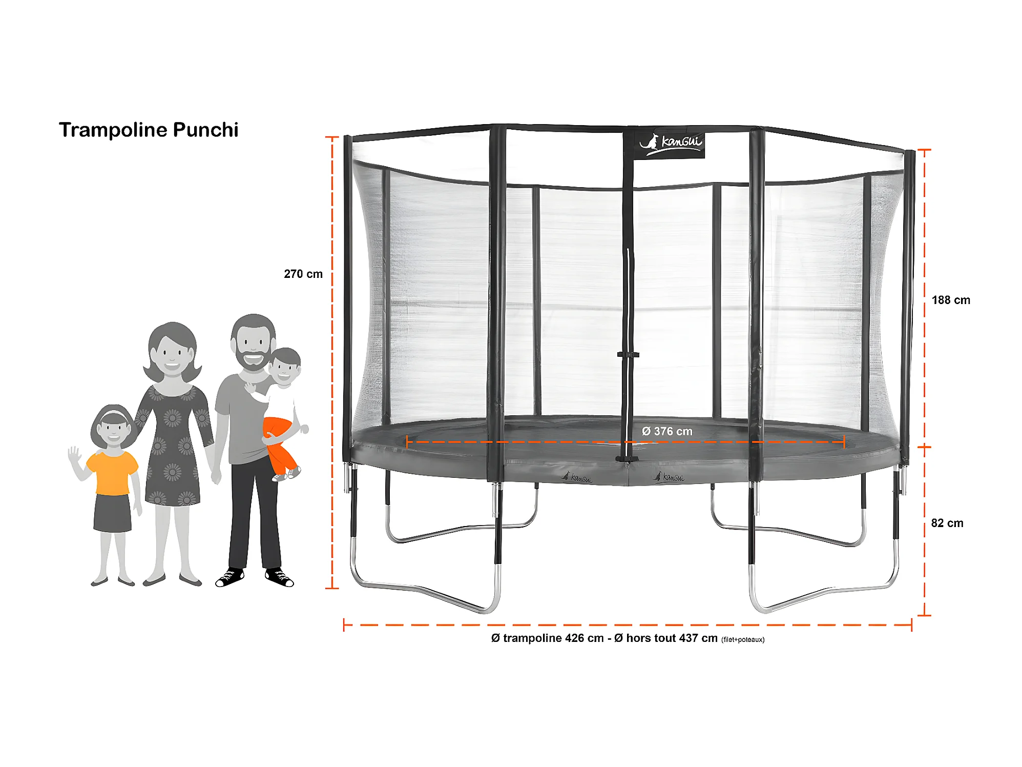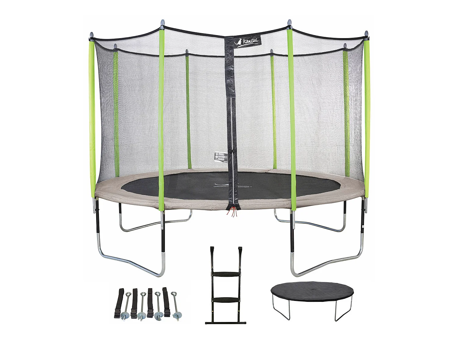Kangui - Trampoline de jardin 426 cm + filet + échelle + bâche + kit d'ancrage JUMPI Taupe/Vert
