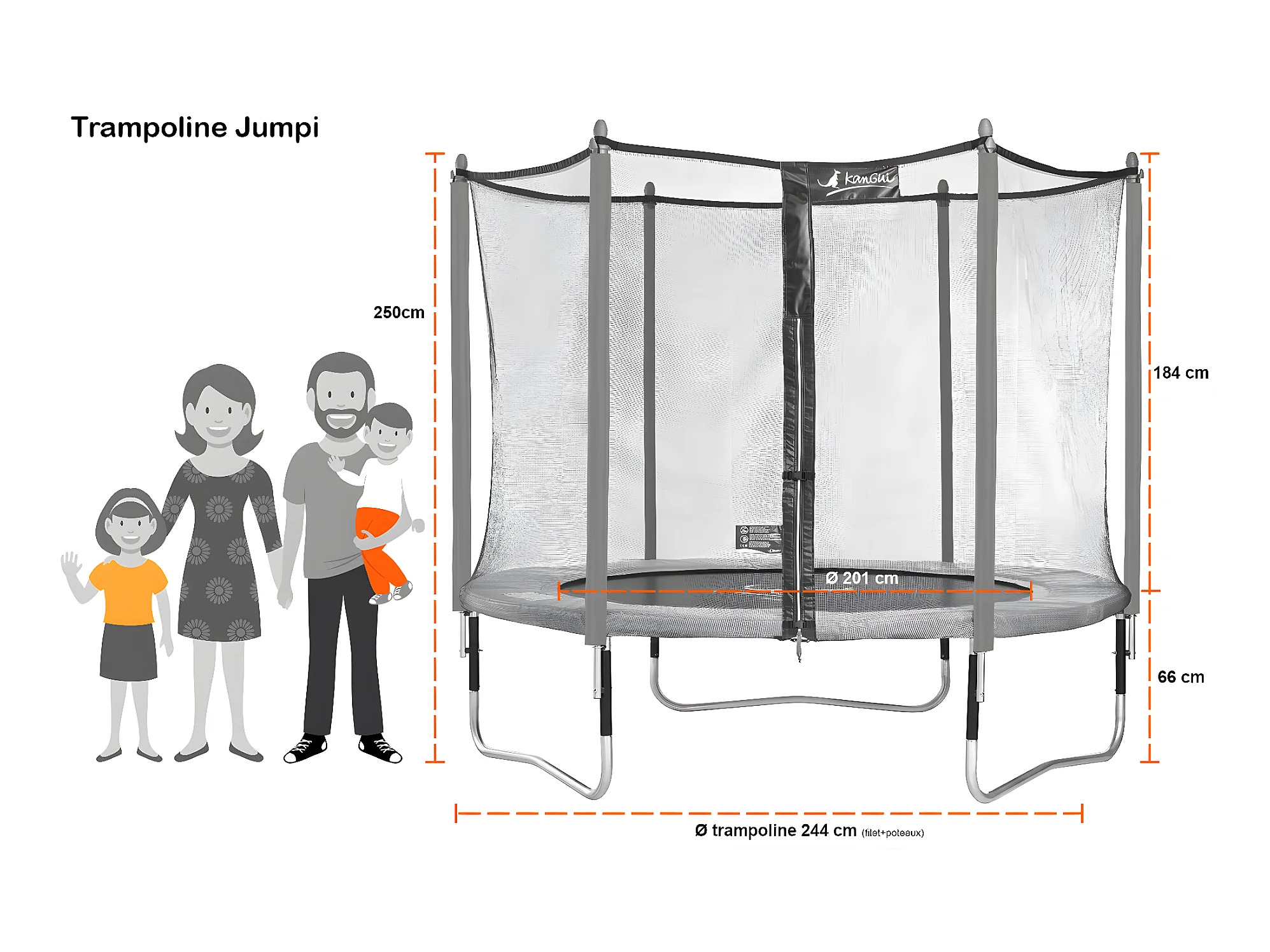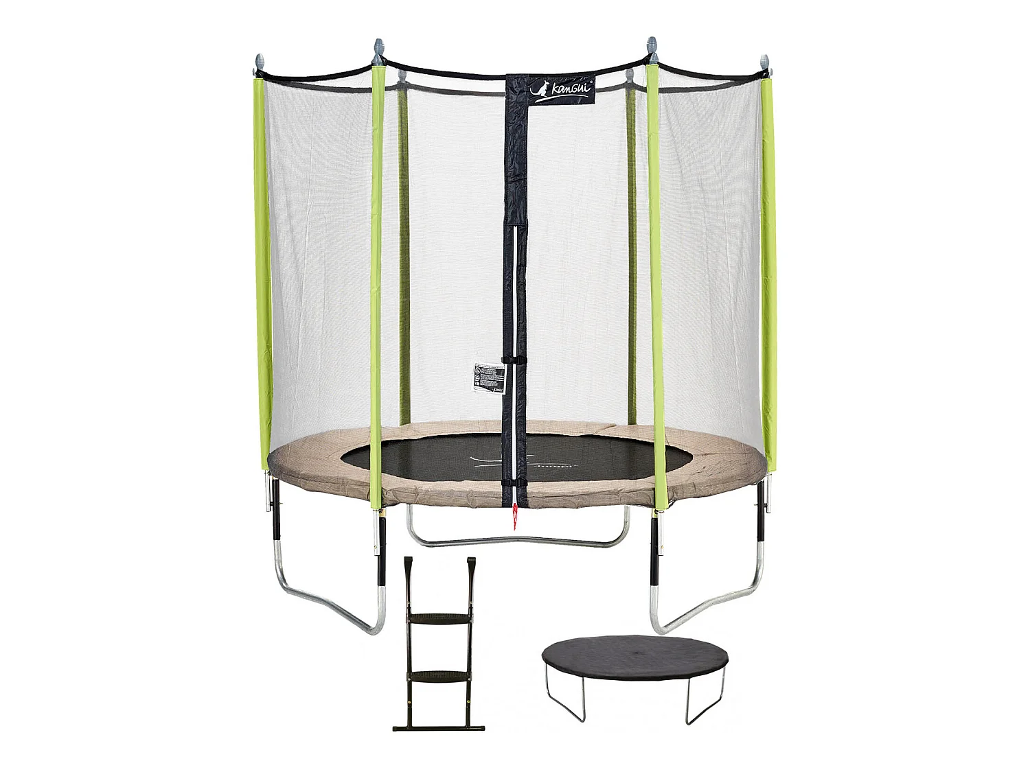 Kangui - Trampoline de jardin 244 cm + filet de sécurité + échelle + bâche de protection JUMPI Taupe/Vert 250