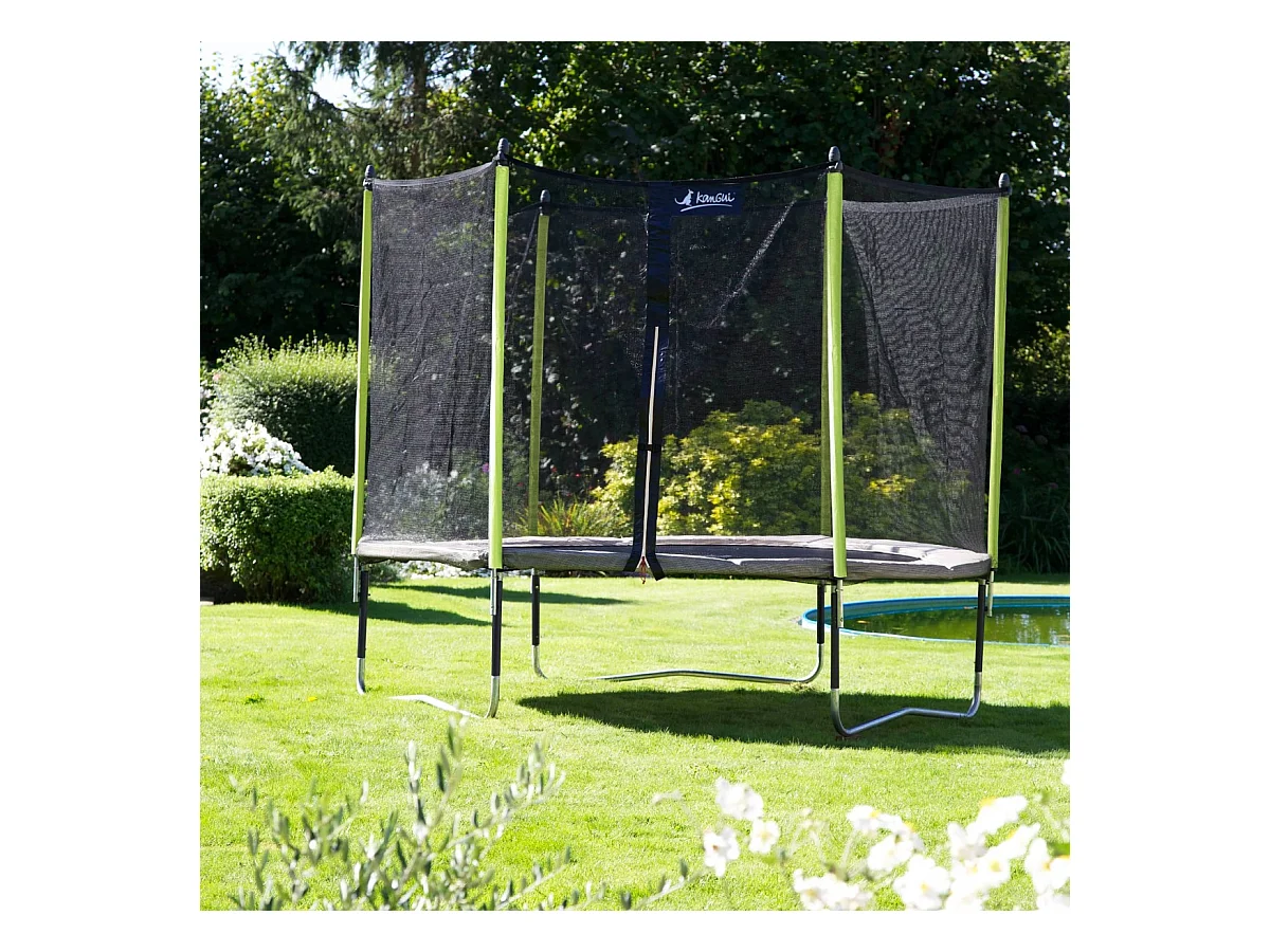 Kangui - Trampoline de jardin 244 cm + filet de sécurité JUMPI Taupe/Vert 250