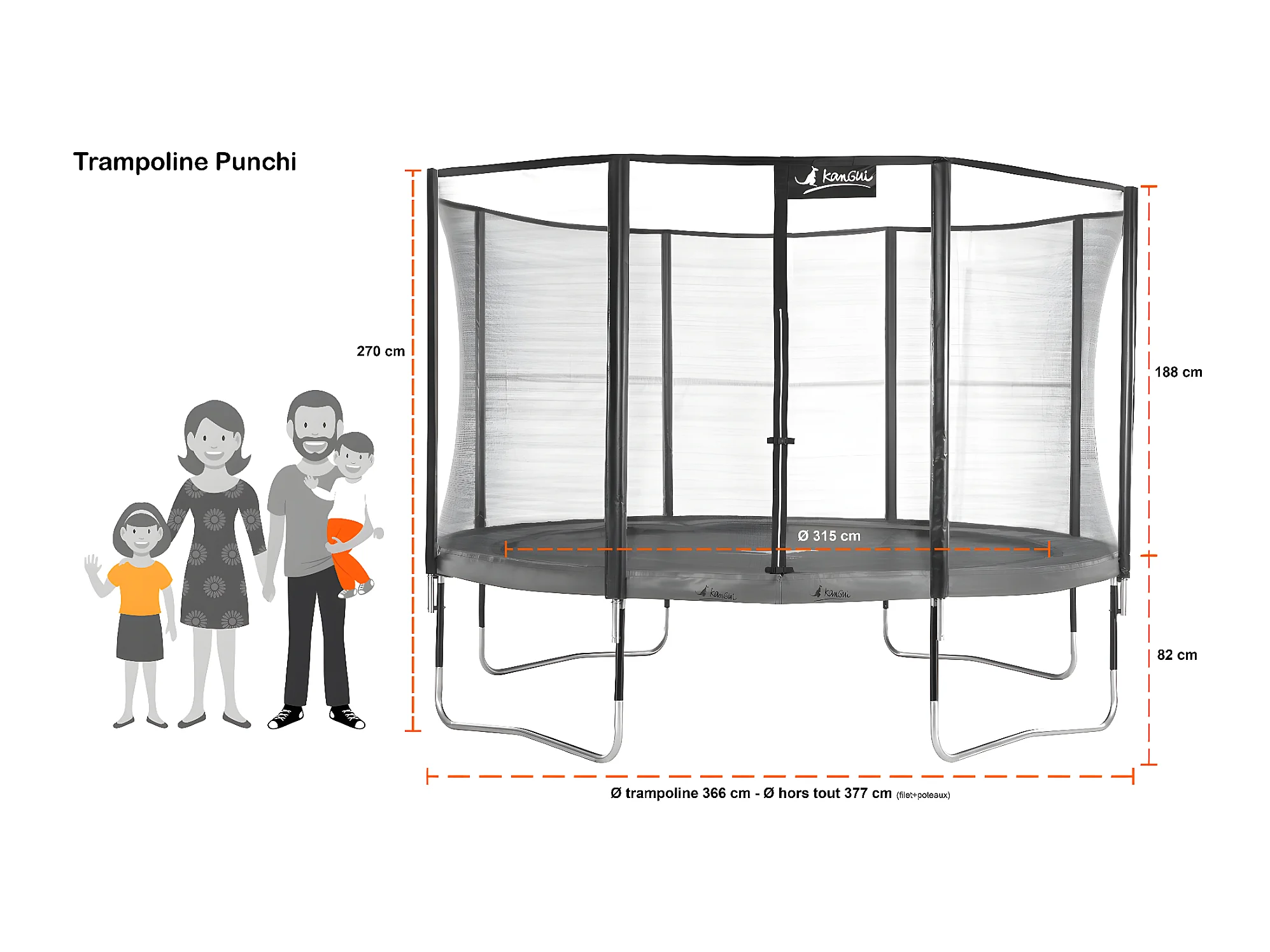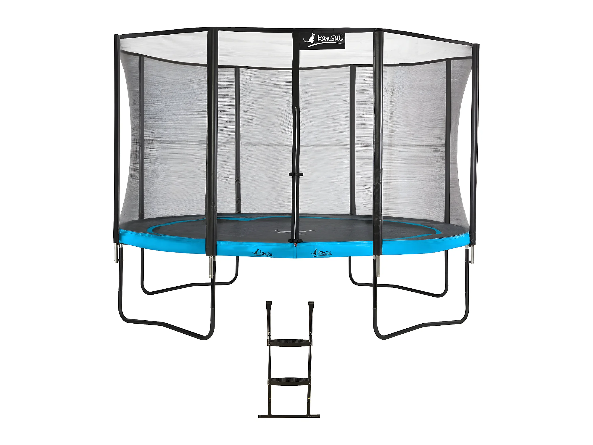 Kangui - Trampoline de jardin 365 cm + filet de sécurité + échelle | PUNCHI Bleu 360