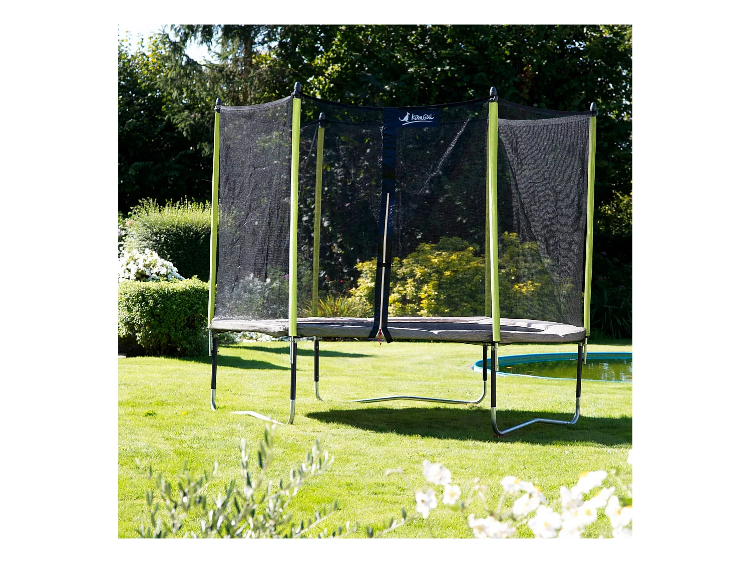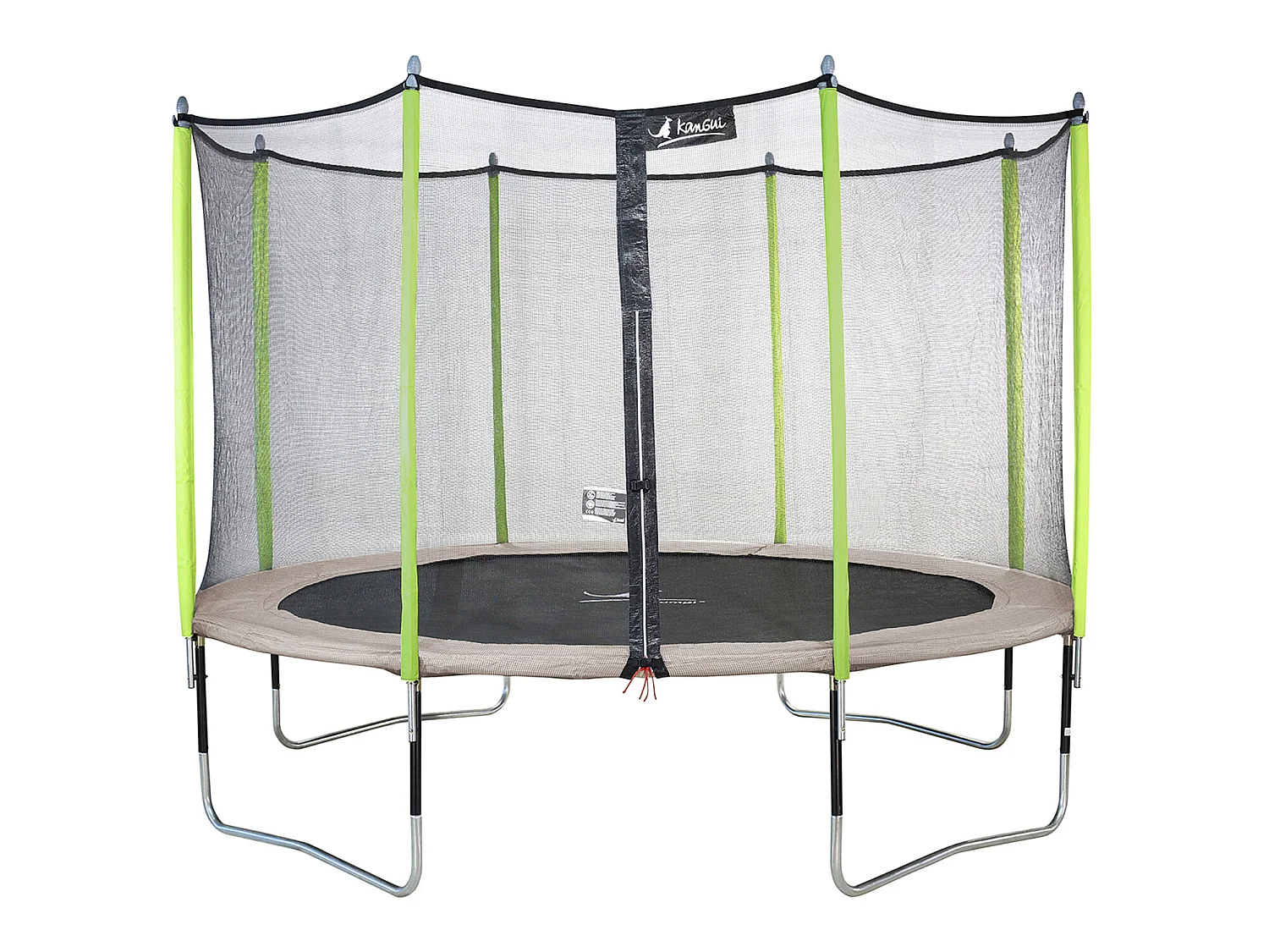 Kangui - Trampoline de jardin 426 cm + filet de sécurité JUMPI Taupe/Vert 430. Trampoline certifié par le CRITT sport & loisirs