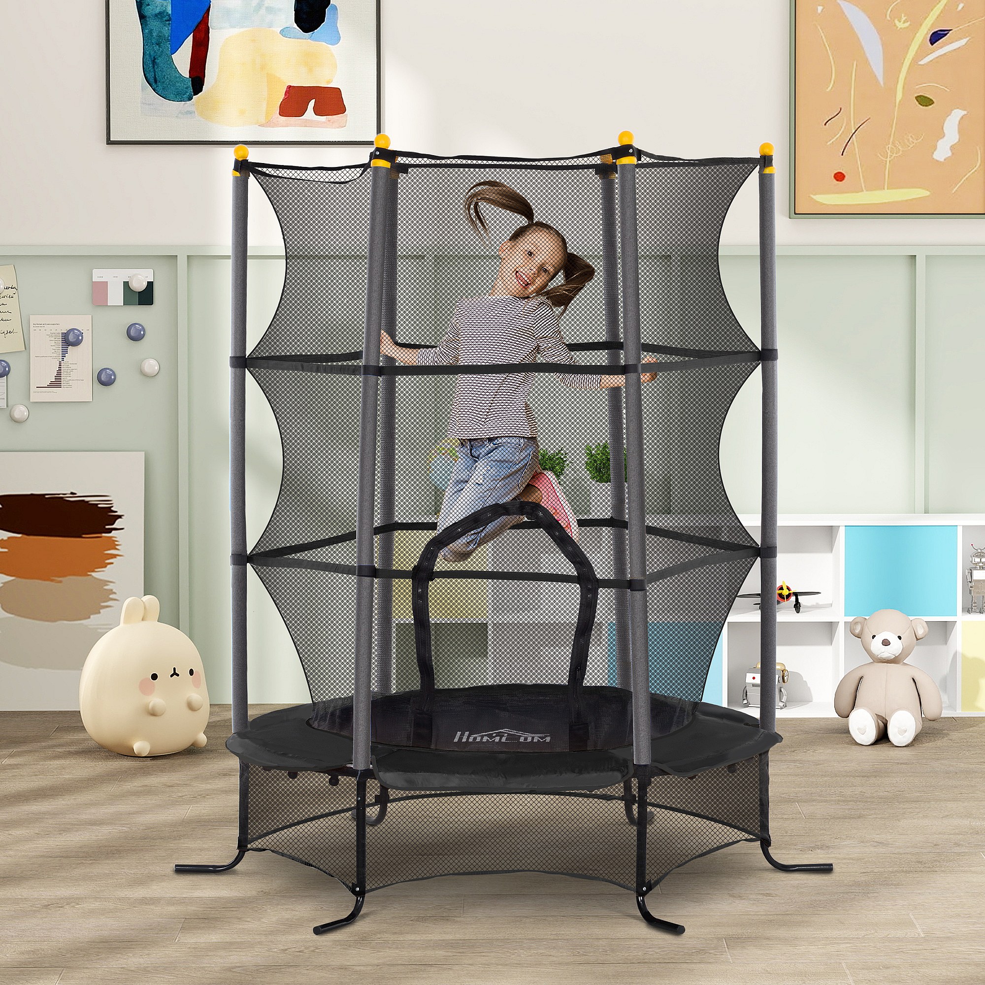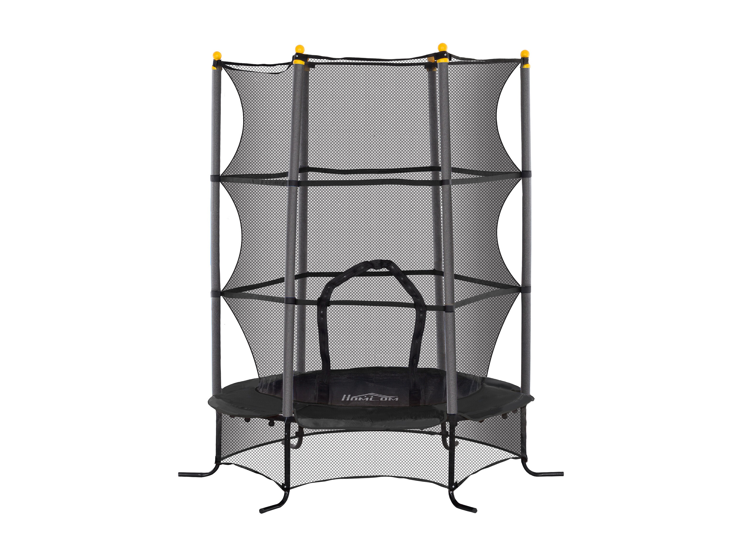 Trampoline de jardin enfants Ø 1,63 x 1,90H m filet de sécurité porte zipée couvre-ressorts + 6 poteaux rembourrés inclus noir