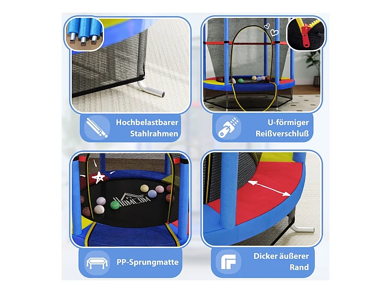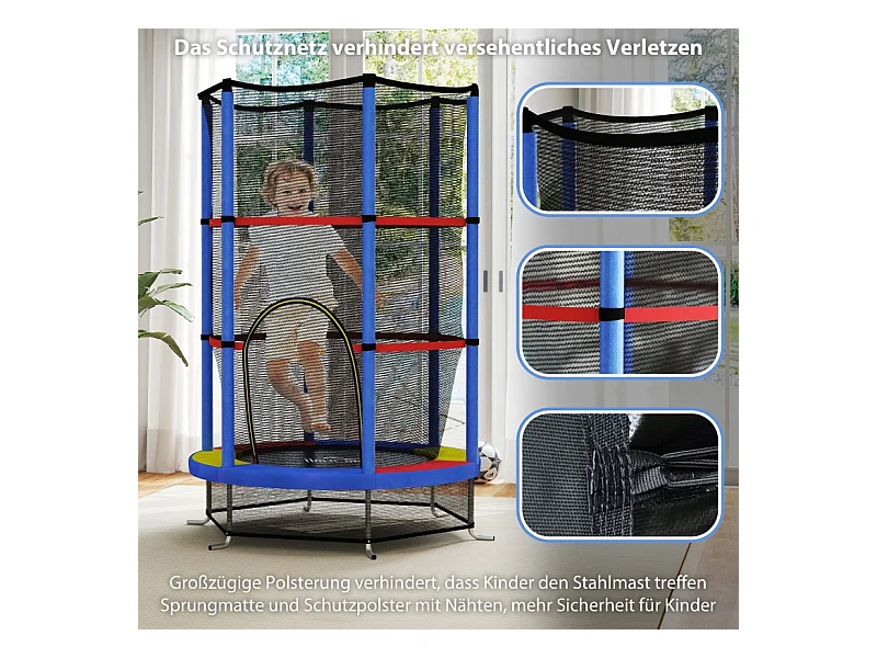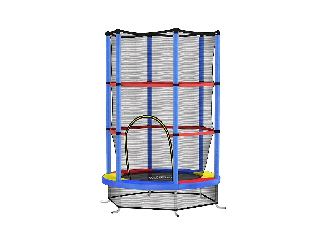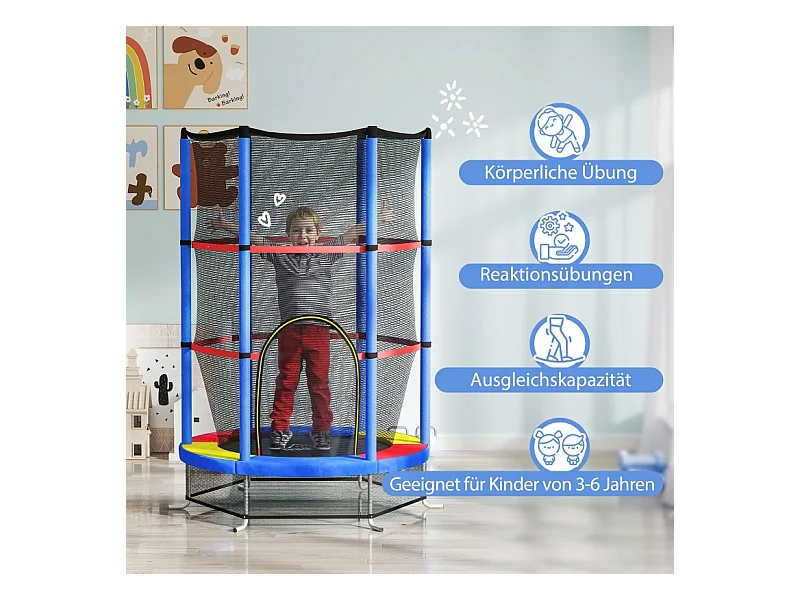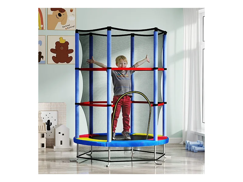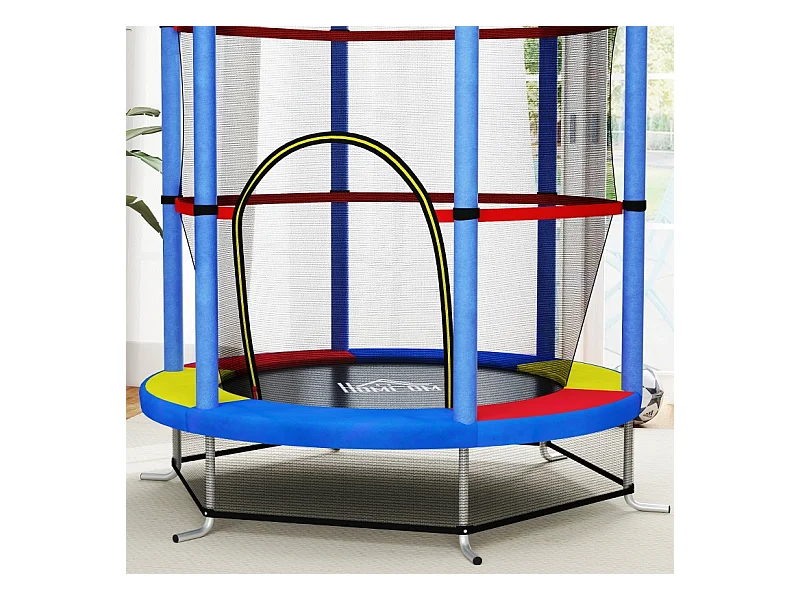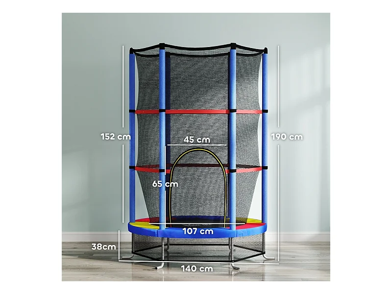 Trampoline pour enfants avec filet de sécurité, à ressorts en caoutchouc, acier, multicolore (140x140x190 cm)