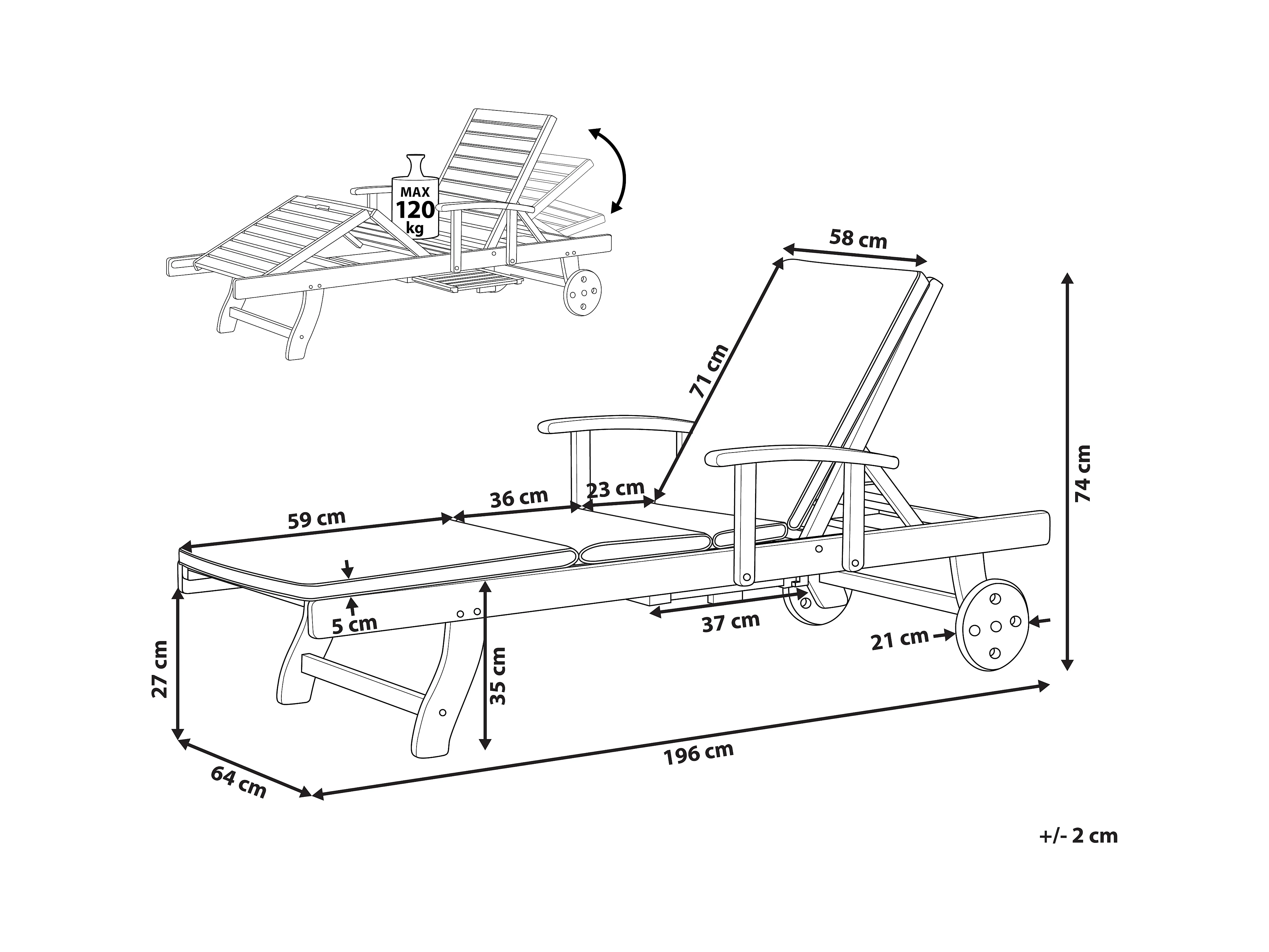 Transat avec coussin JAVA PREMIUM Acacia Gris clair