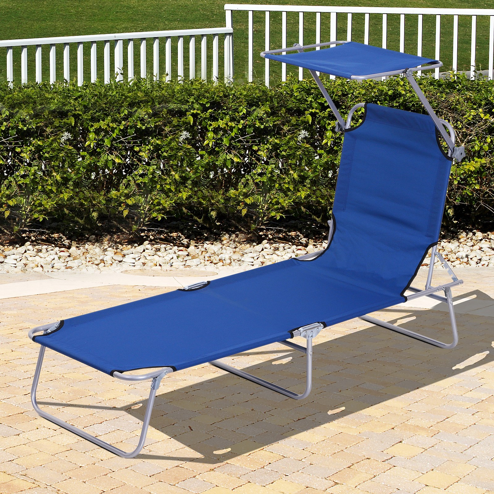 Transat bain de soleil pliable grand confort dossier et pare-soleil réglable multi-positions bleu