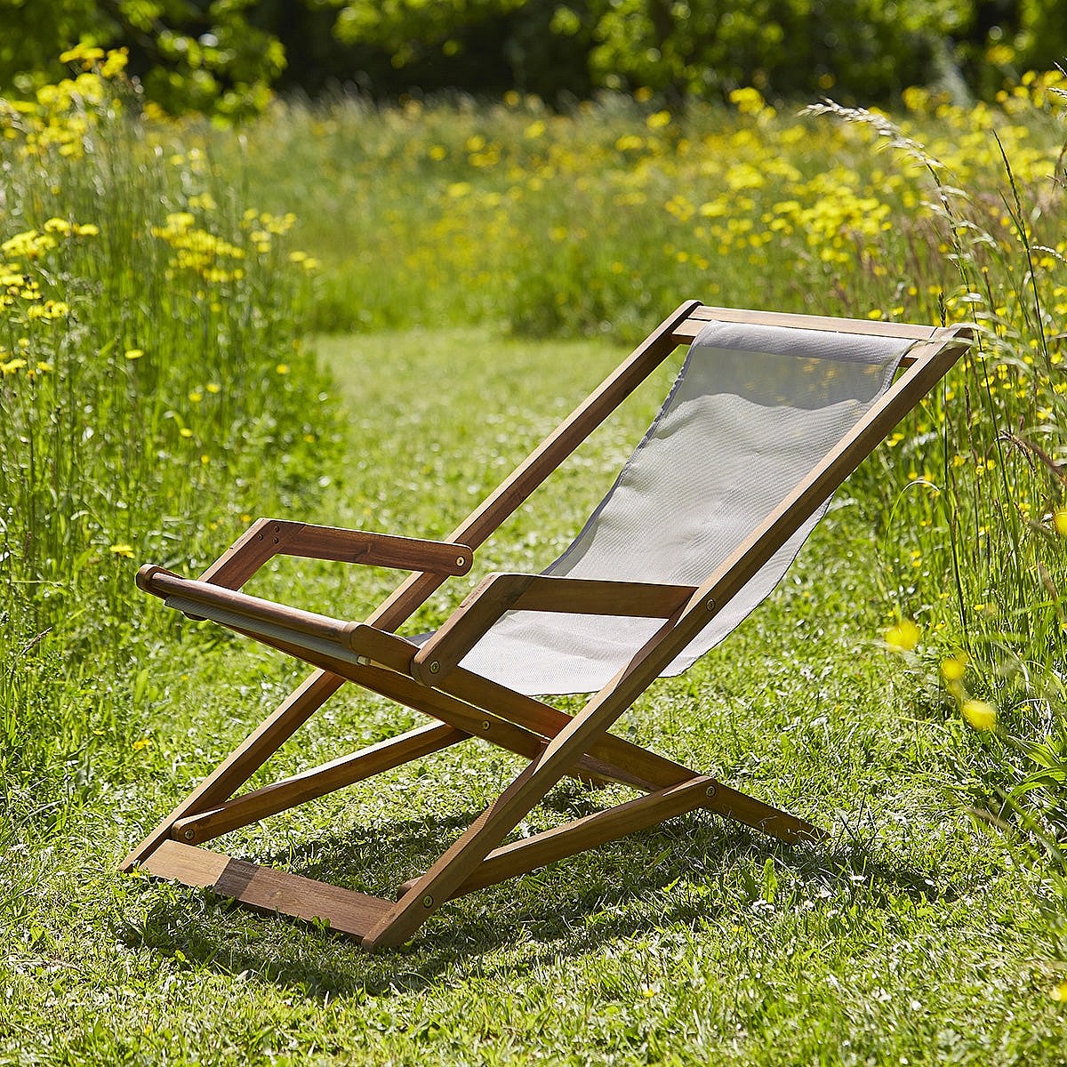 Lot de 2 bains de soleil en acacia massif et textilène gris