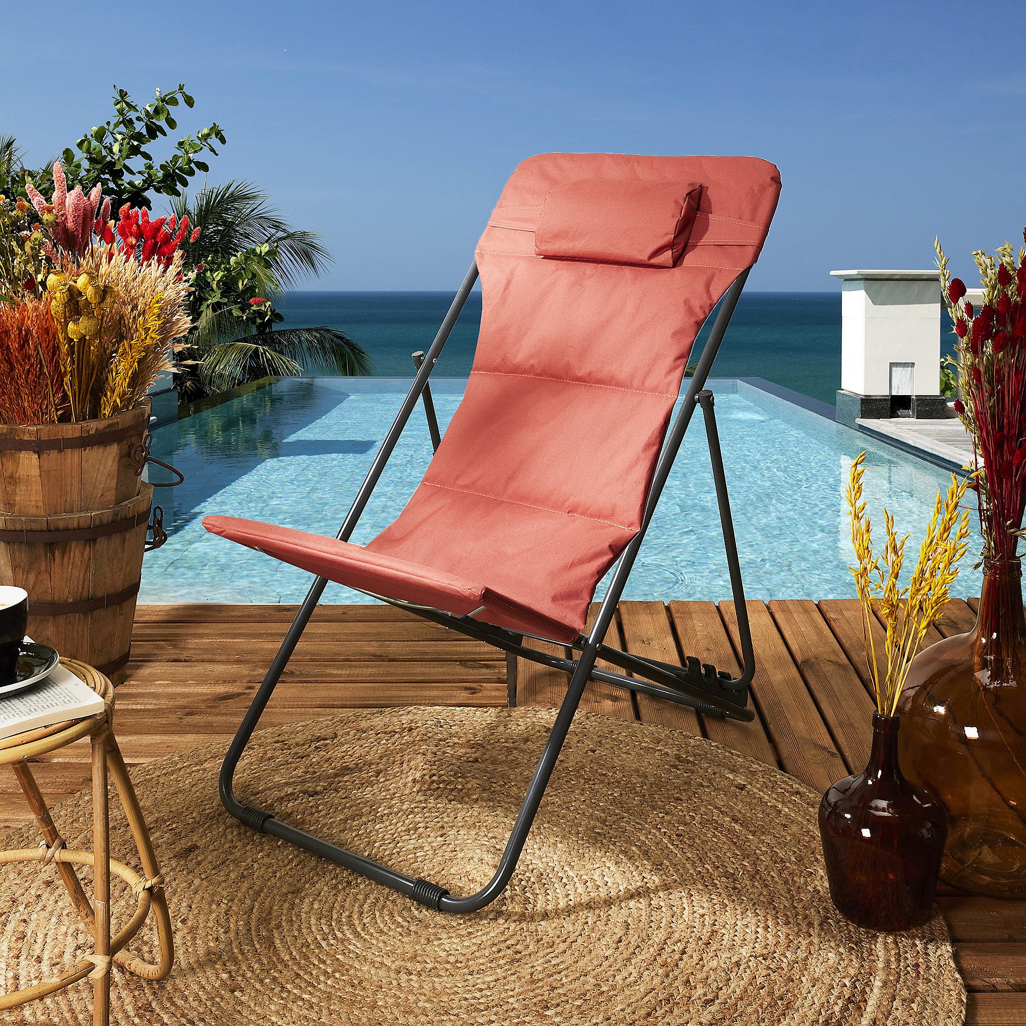 Set bain de soleil et table d'appoint BARBADOS en textilène terracotta - aluminium terracotta - HAPPY GARDEN