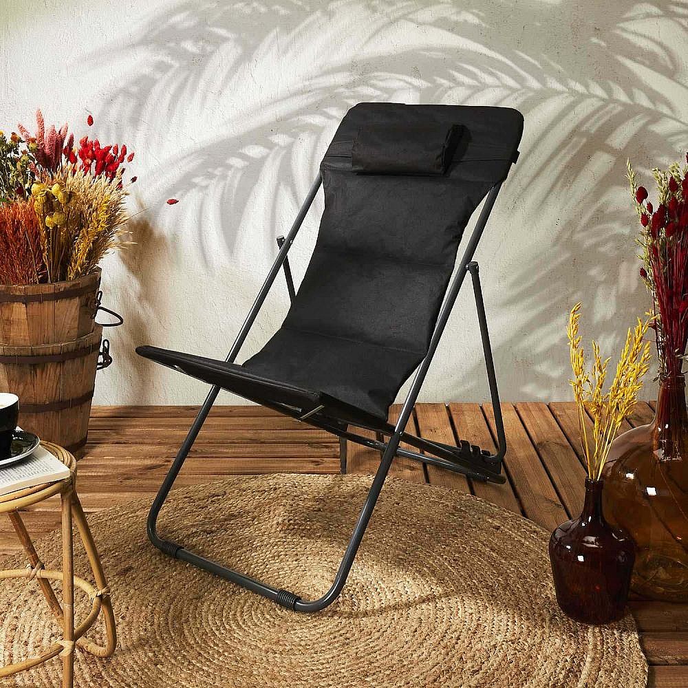 Fauteuil suspendu en résine tressée - Noir avec coussins blancs - OROSI de MYLIA