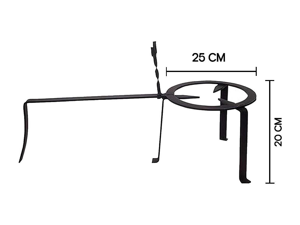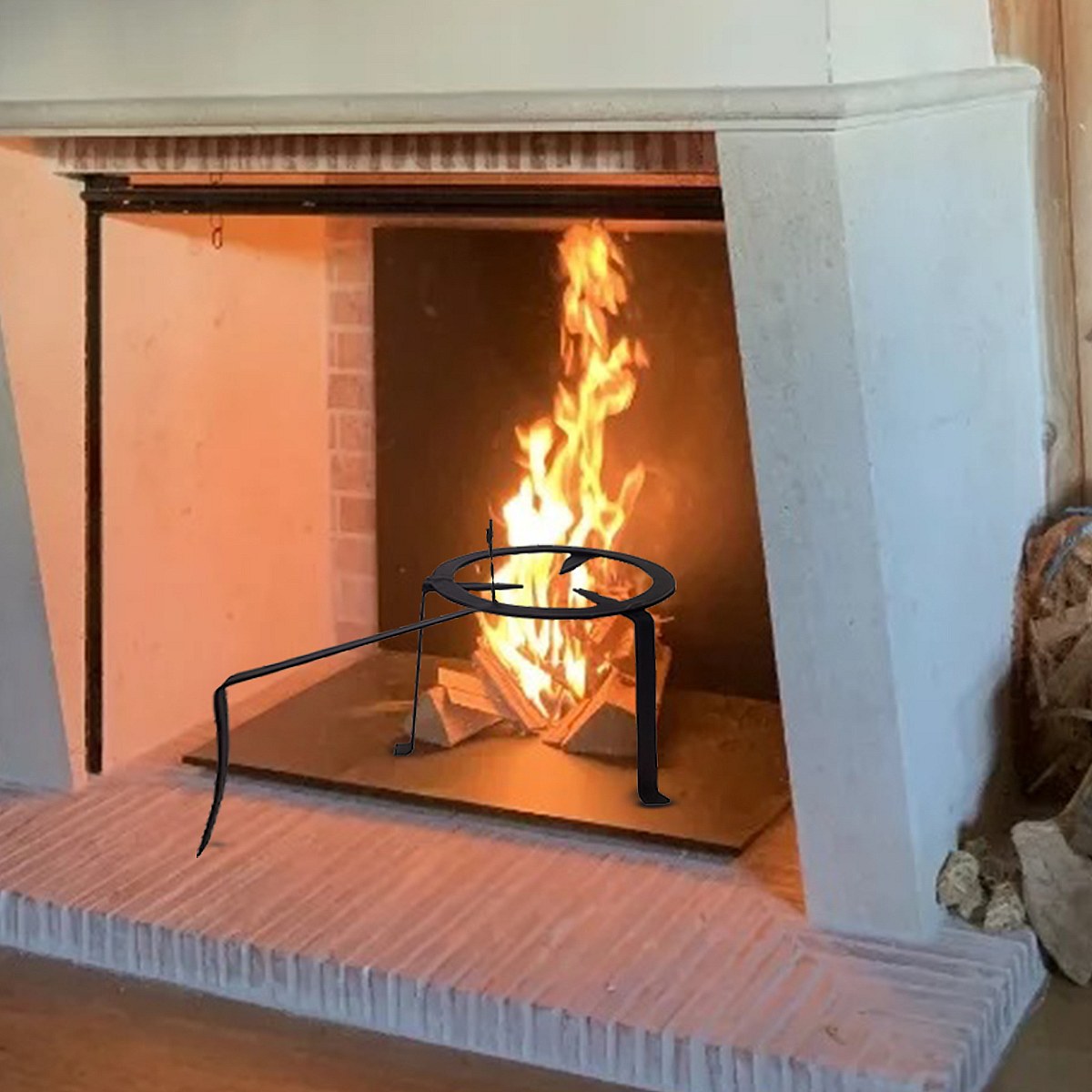 Trépied pour cheminée feux, réchaud, avec pied en fer forgé couleur Noir - diametre 25 x hauteur 20 cm
