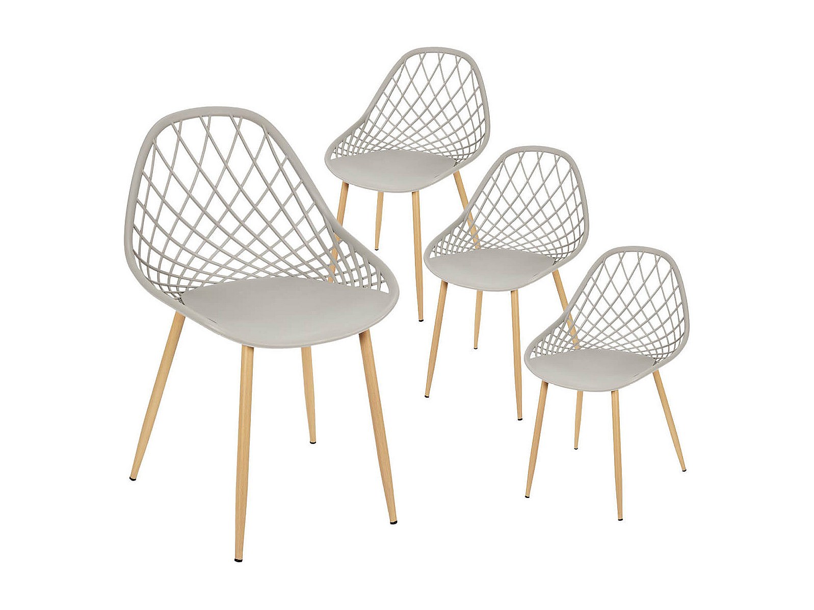 TRESSIE - Lot de 4 Chaises Gris Taupe Coque Arrondie