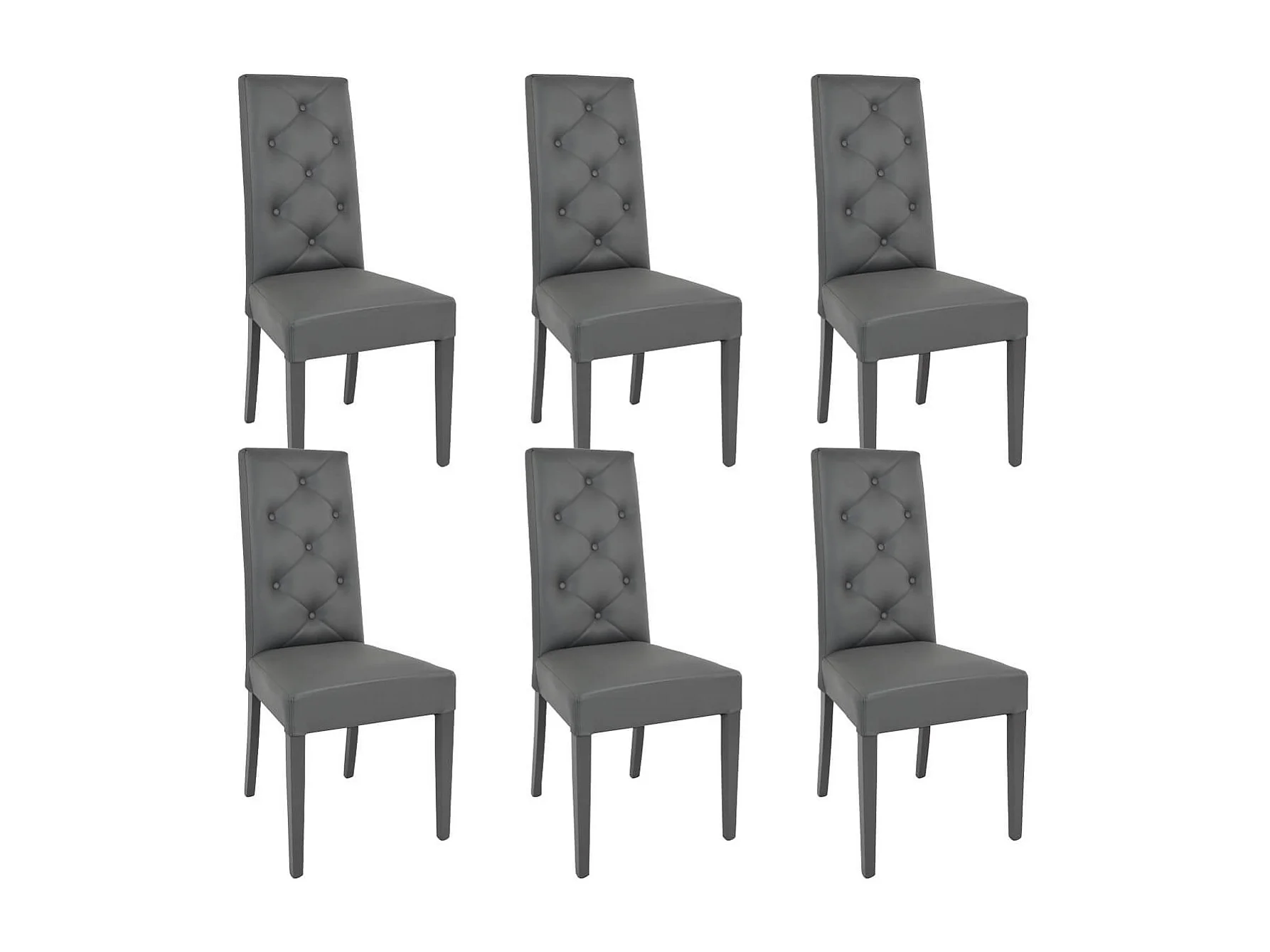 TREVI - Lot de 6 Chaises Simili Gris et Pieds Laqués