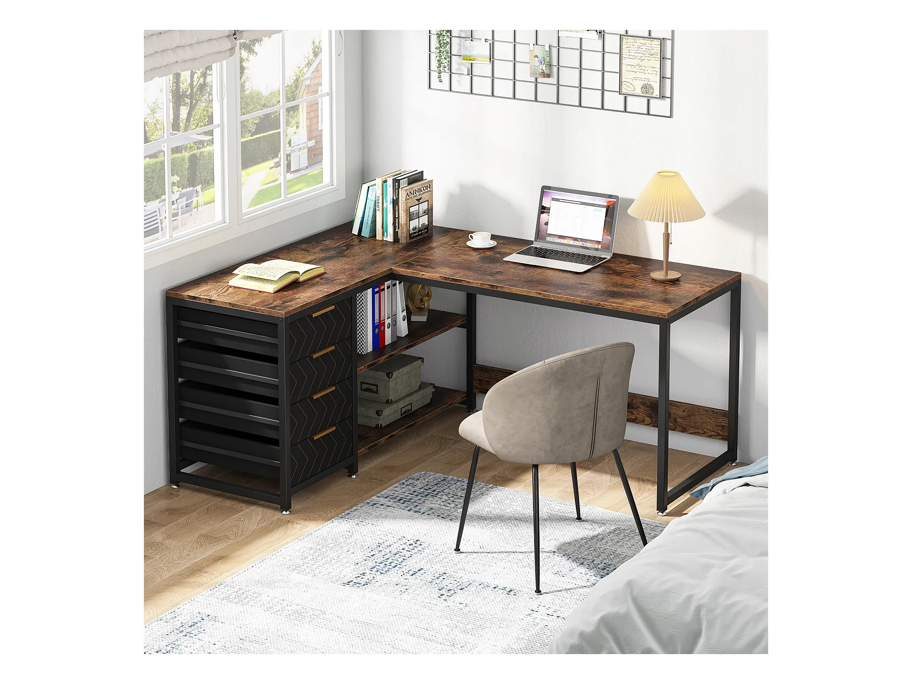 Bureau d'angle en Forme de L avec étagères, réversible, en Forme de L, avec Support D'écran et étagères (Marron Noir)