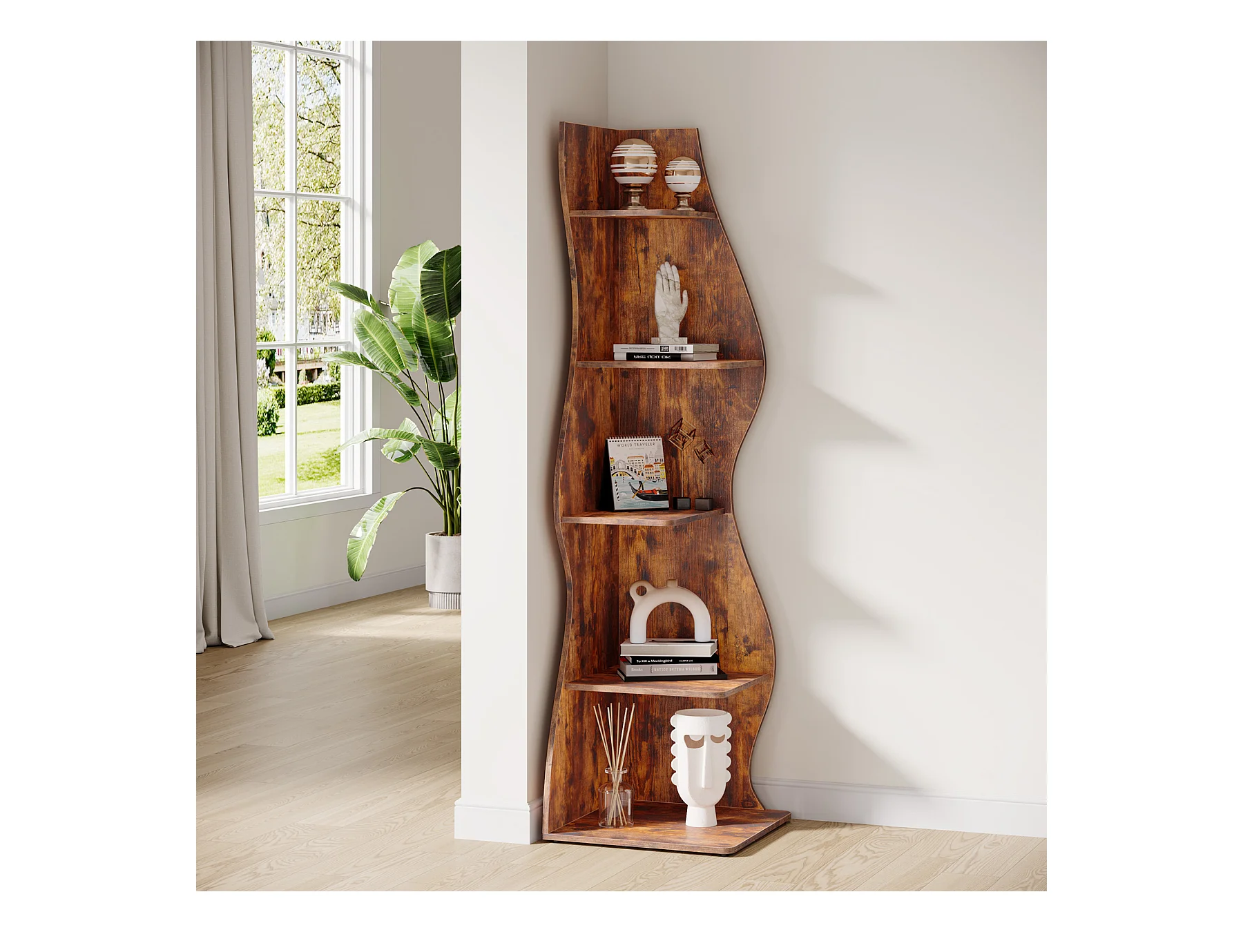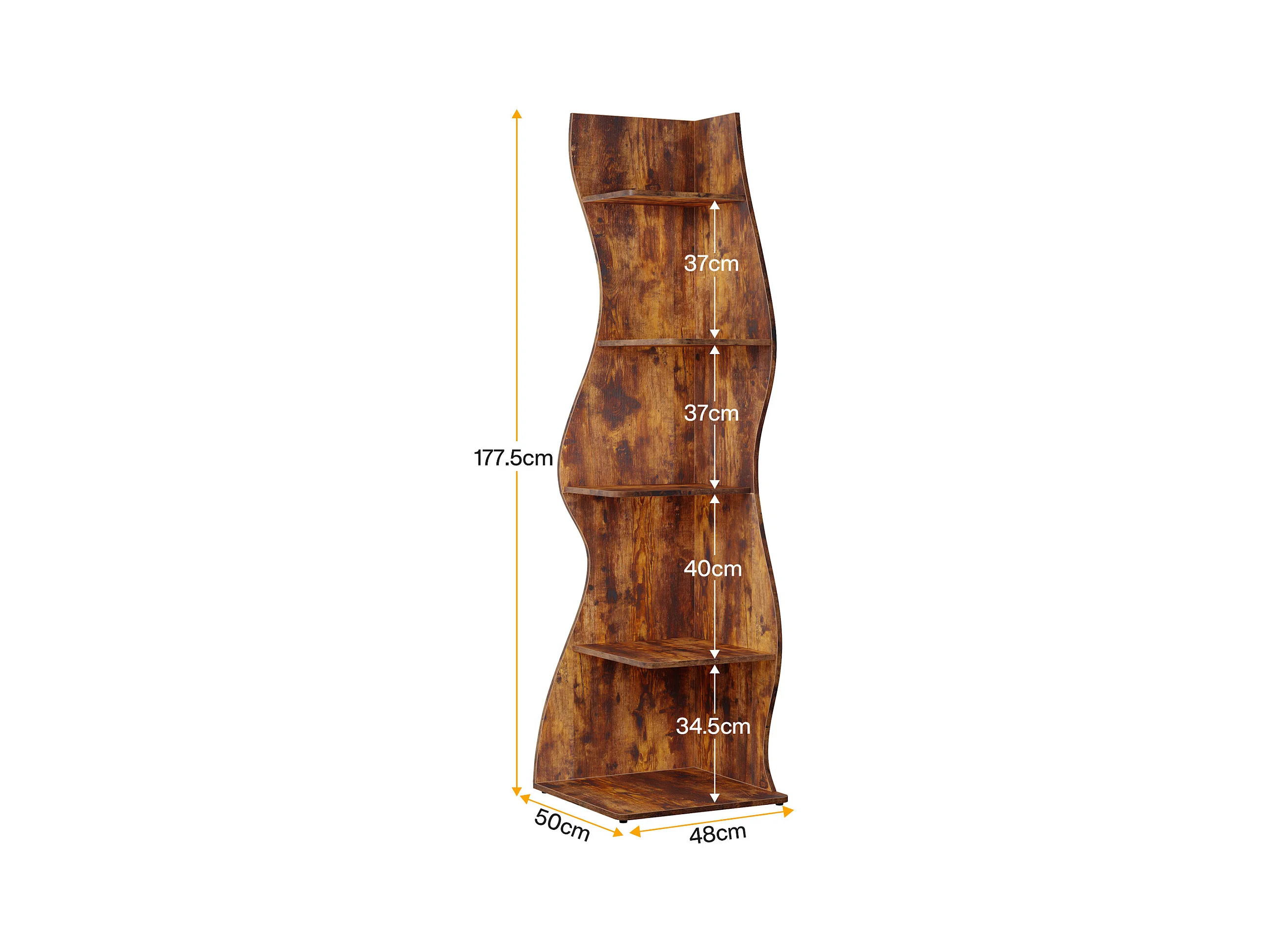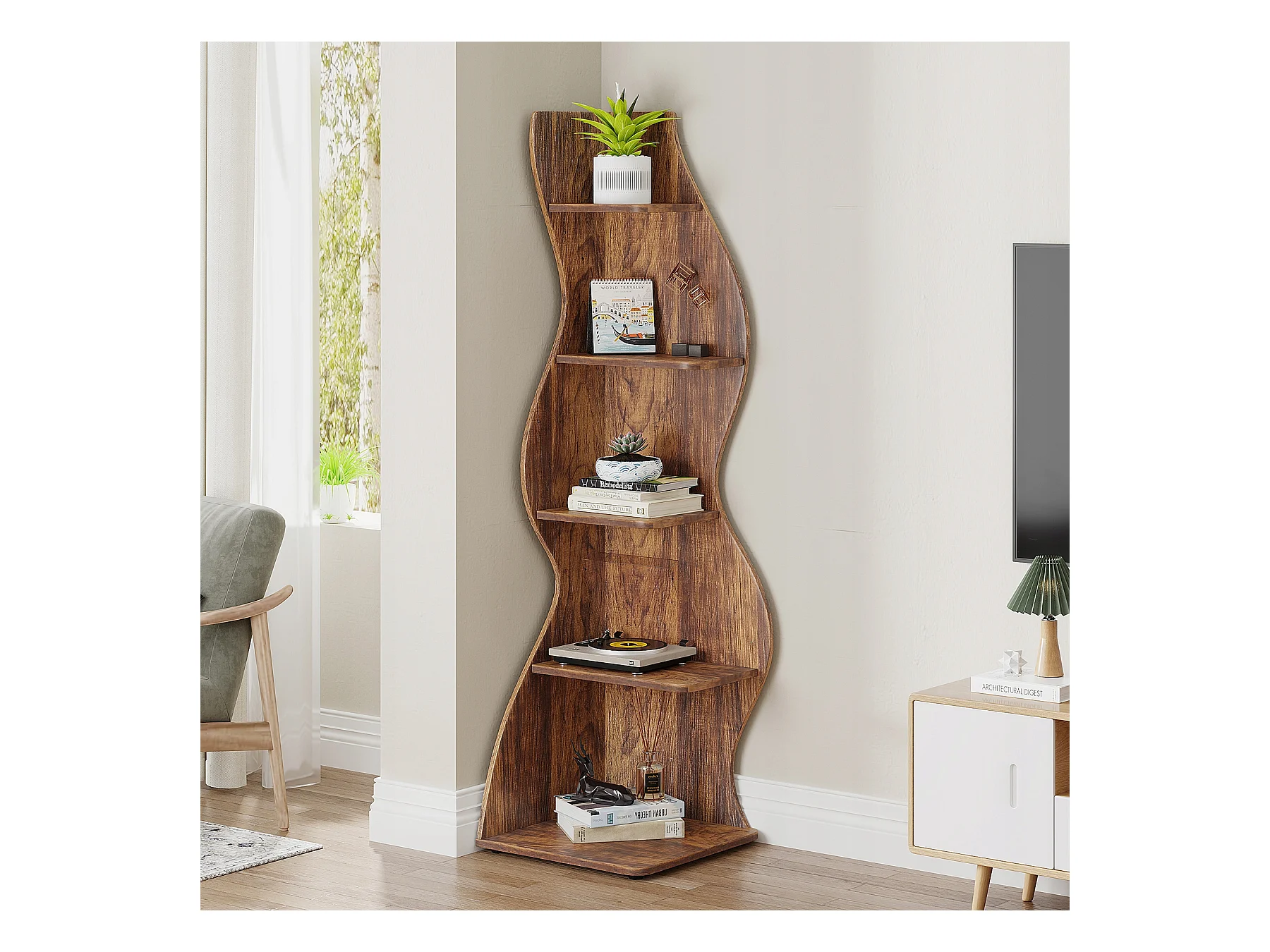 Étagère d'angle Moderne à 5 Niveaux, Petite Bibliothèque d'angle élégante, Support de Plante unité d'organisation avec Forme Unique, Marron