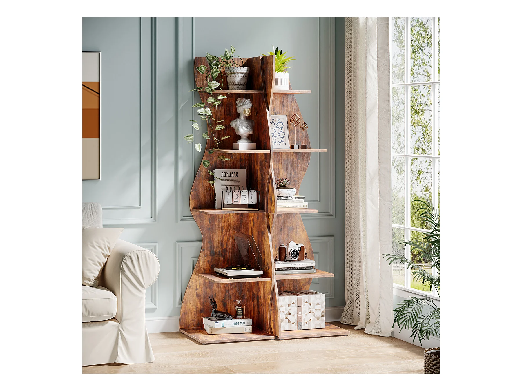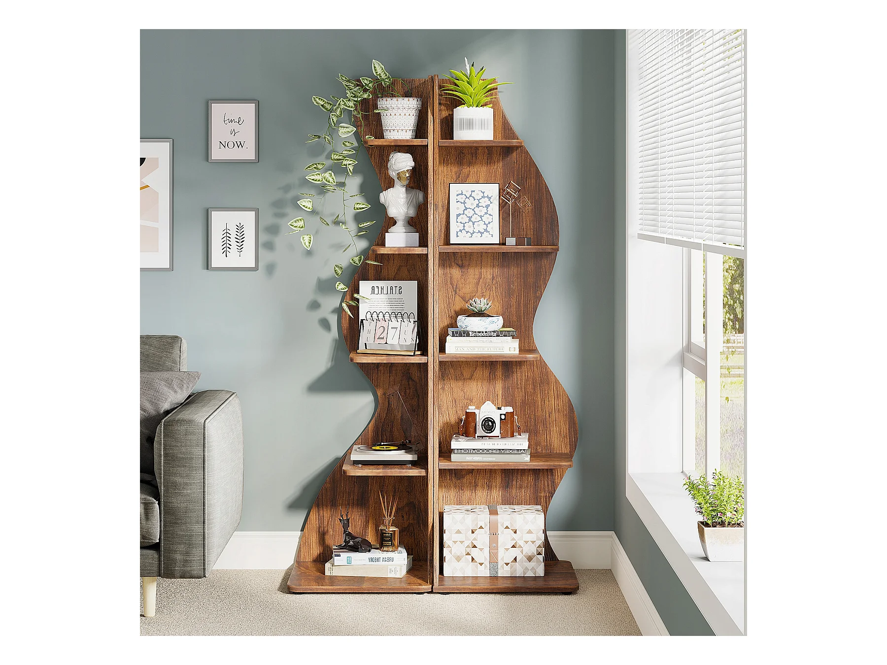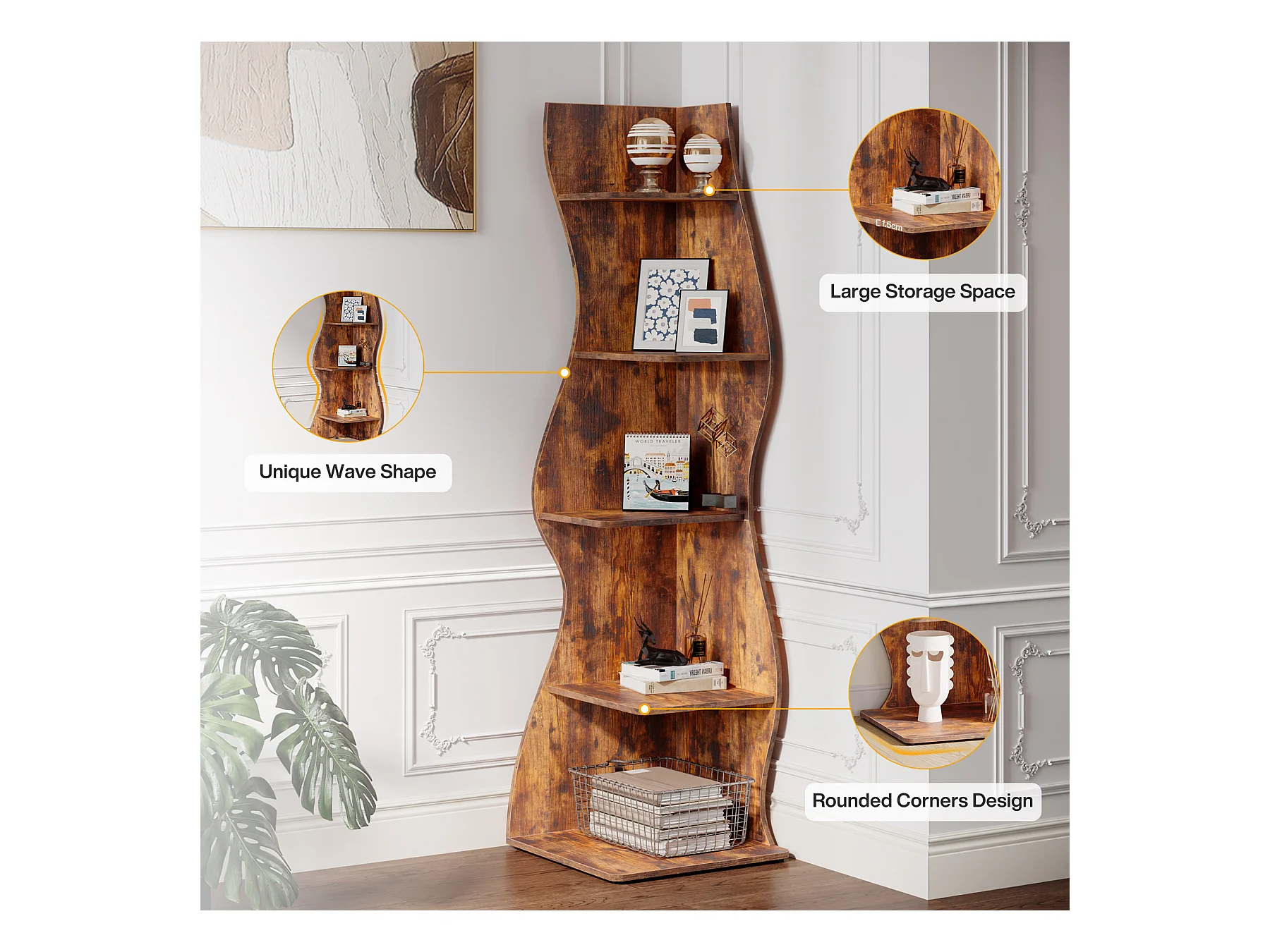 Étagère d'angle Moderne à 5 Niveaux, Petite Bibliothèque d'angle élégante, Support de Plante unité d'organisation avec Forme Unique, Marron