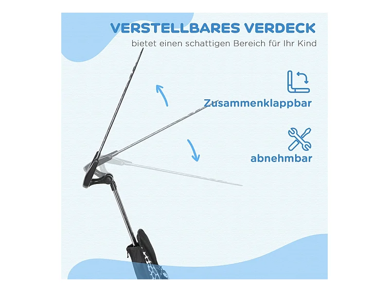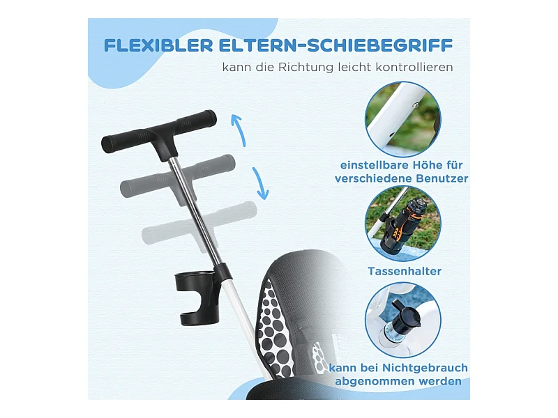 Tricycle évolutif 6-en-1 avec canne parentale, métal, bleu foncé (105x47x98cm)