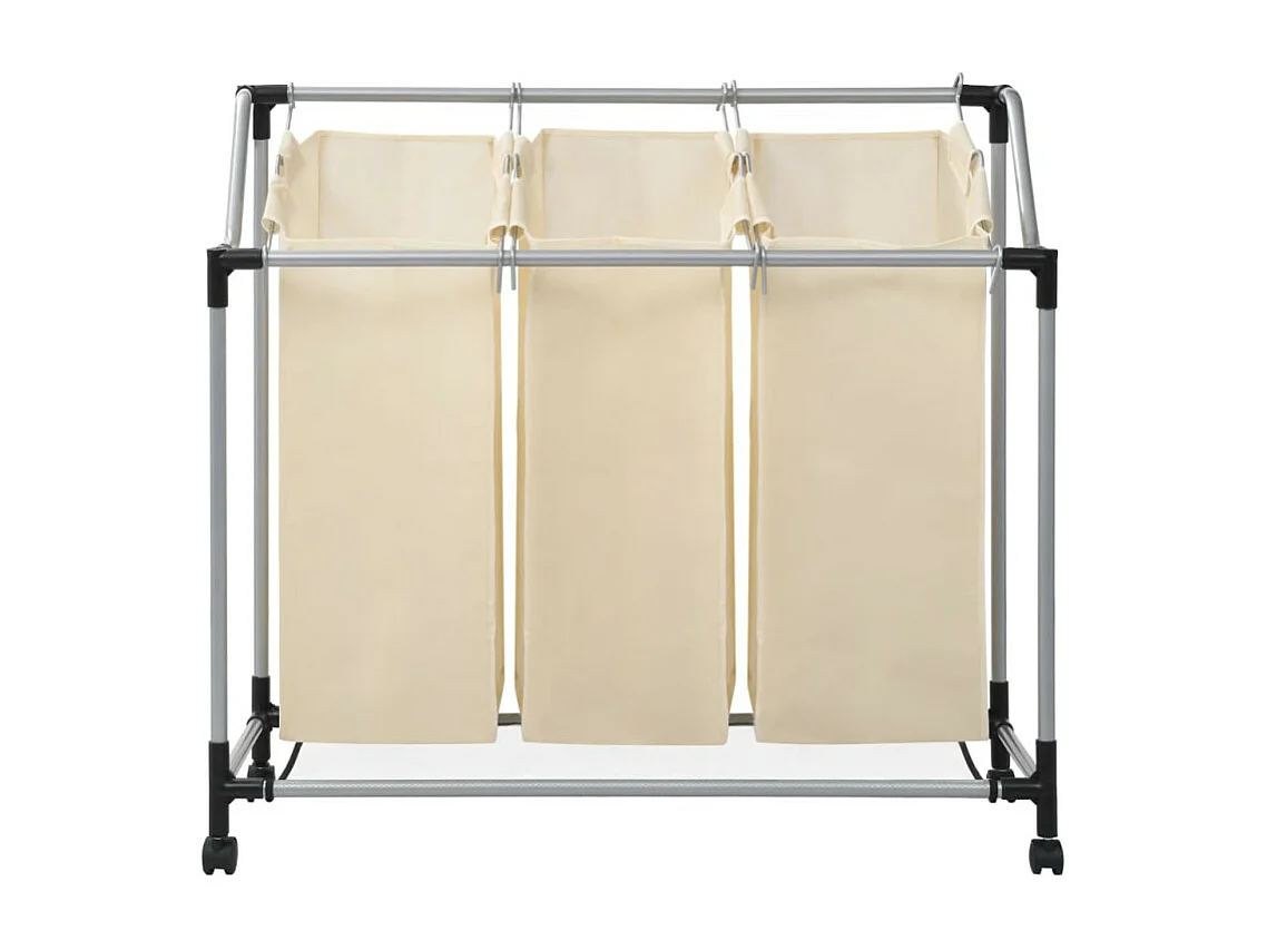 Panier à linge Valora en bambou naturel 3 compartiments 150 L avec couvercle
