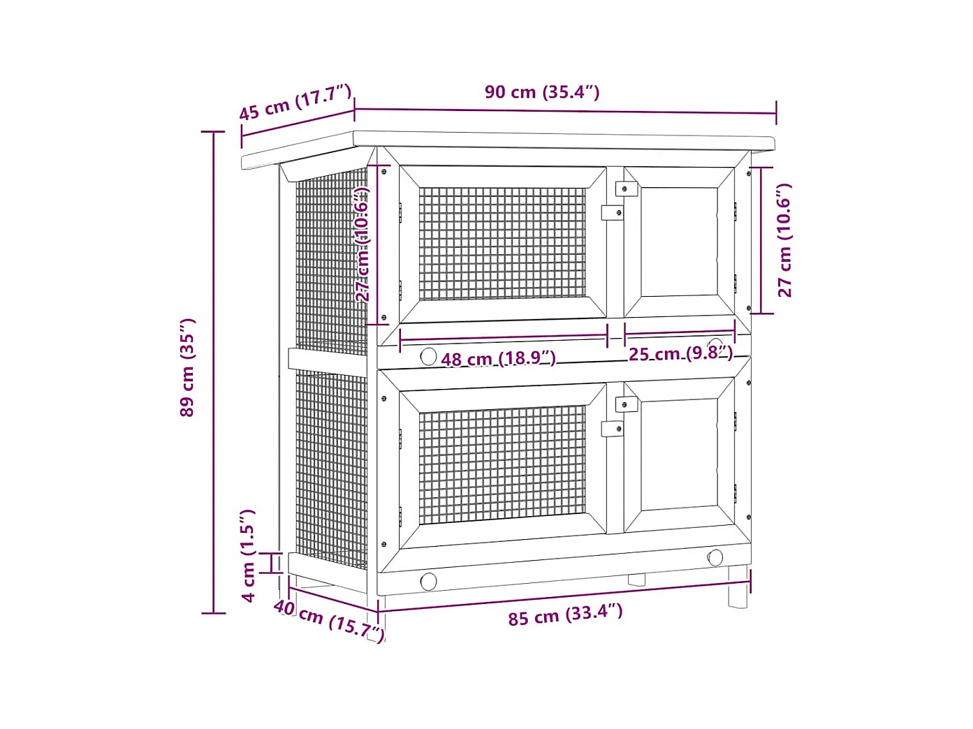 Trinity Clapier d'extérieur 4 portes Rouge Bois