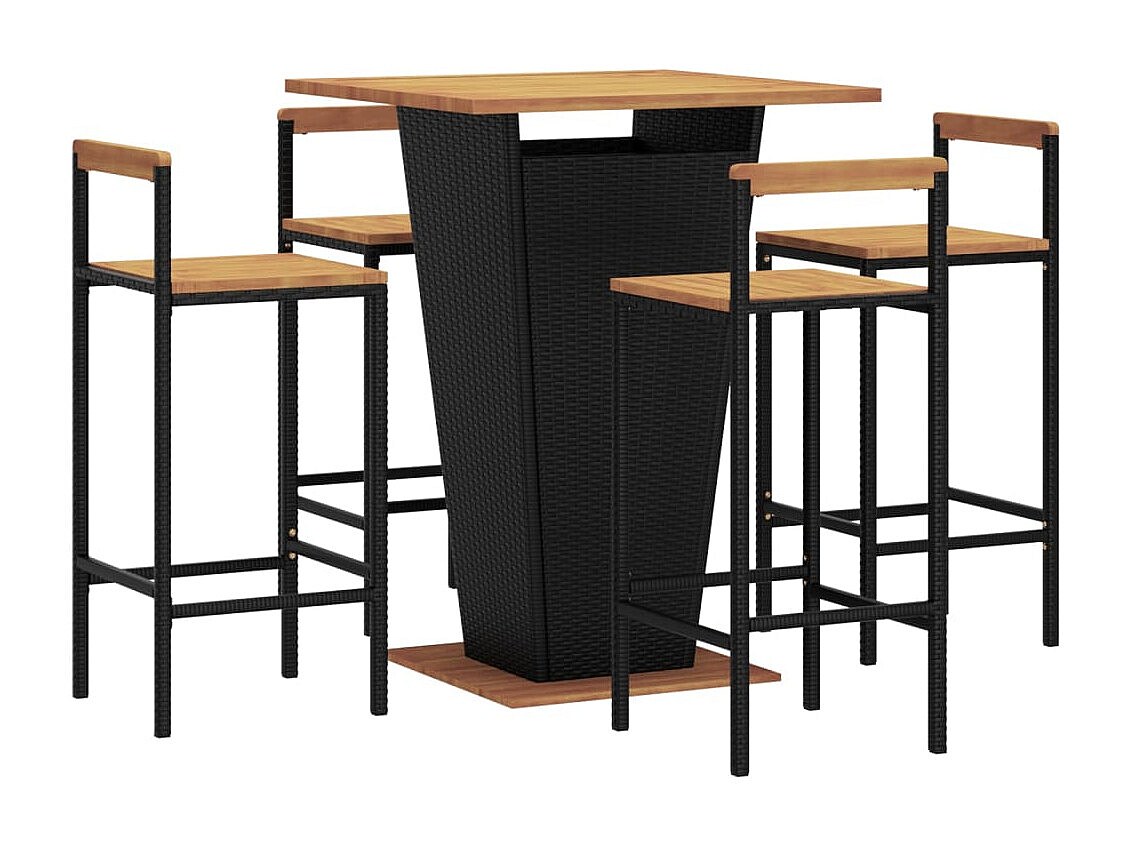 Trinja Ensemble de bar jardin 5 pcs noir poly rotin/bois massif acacia