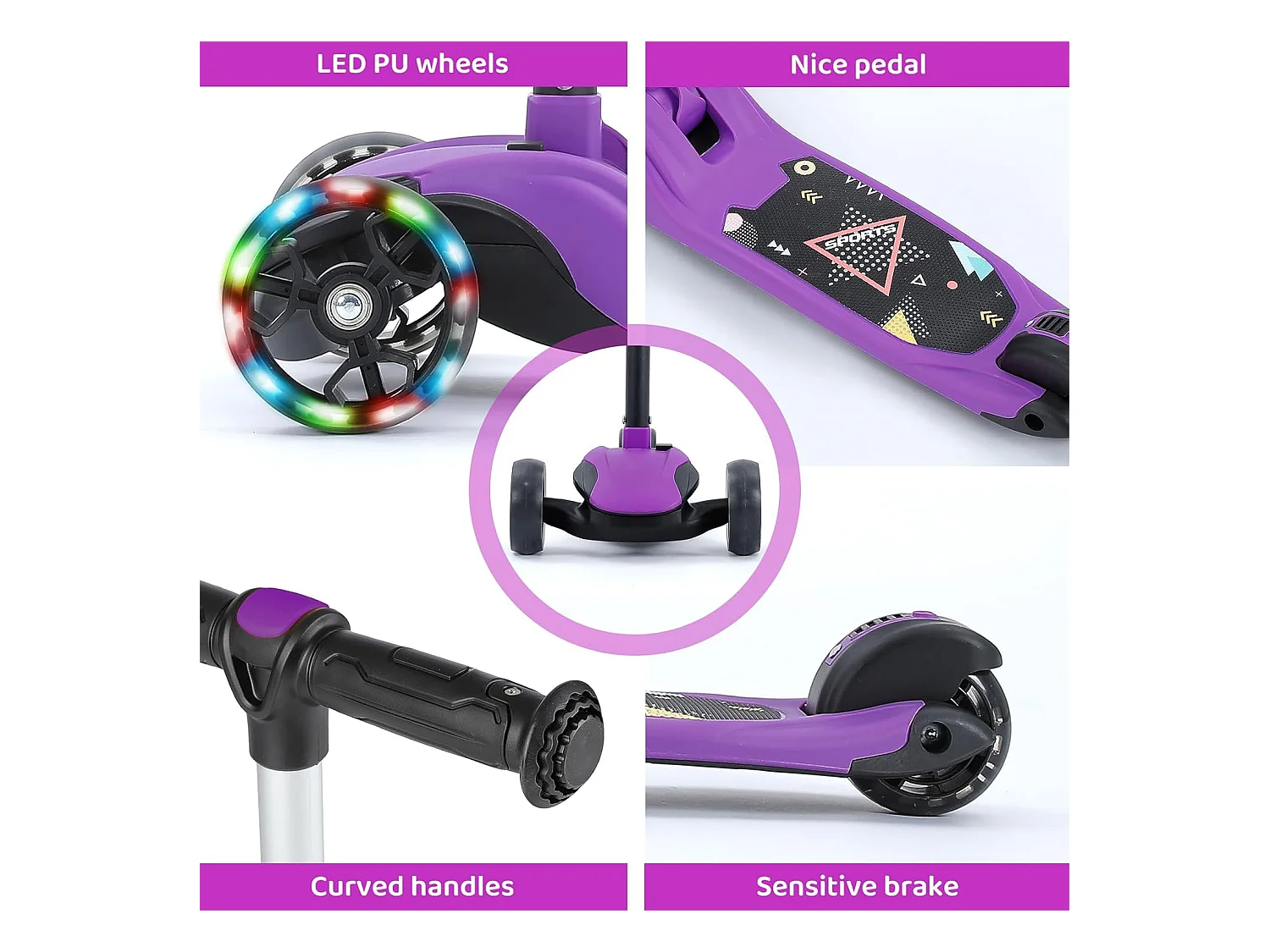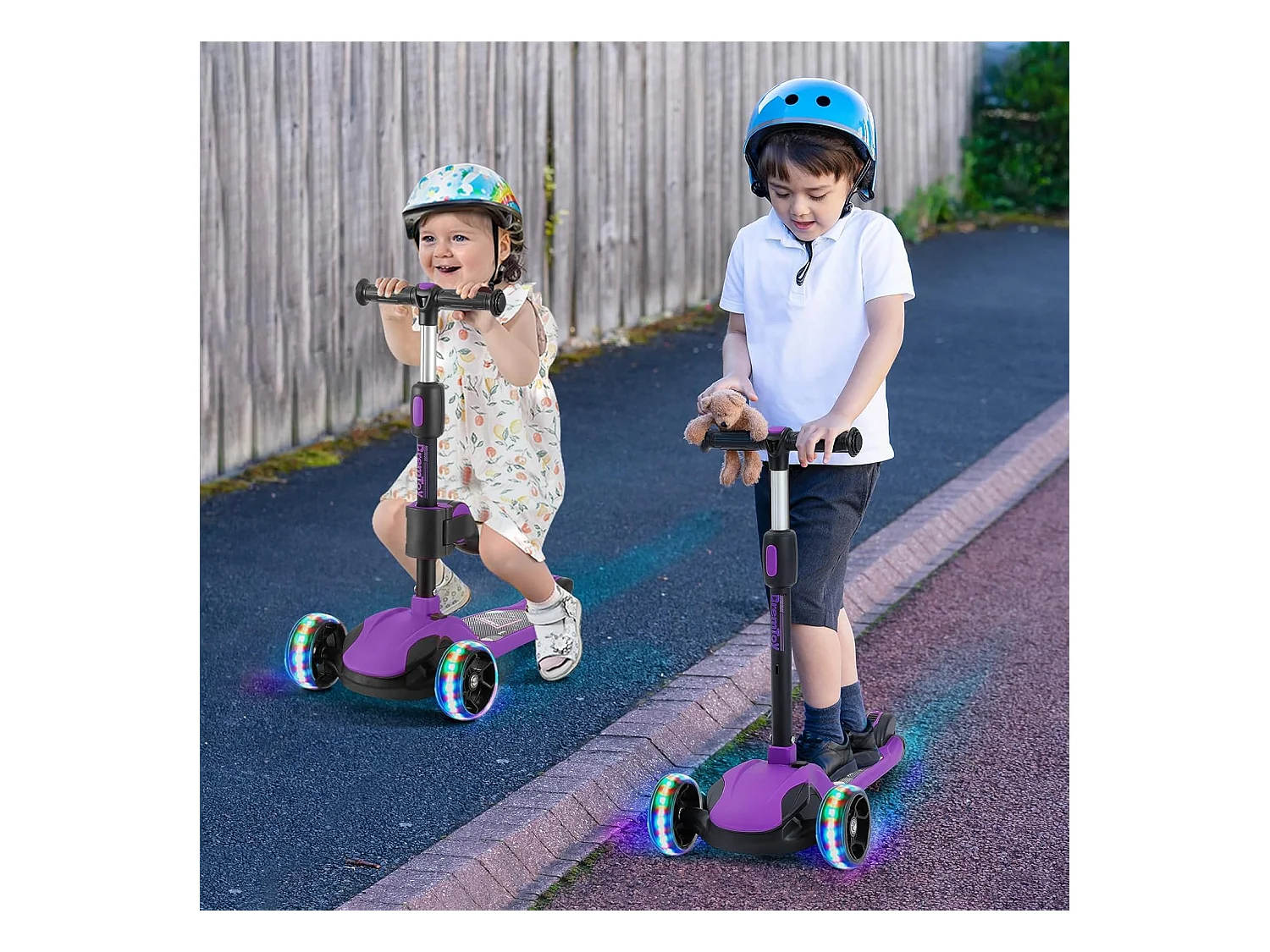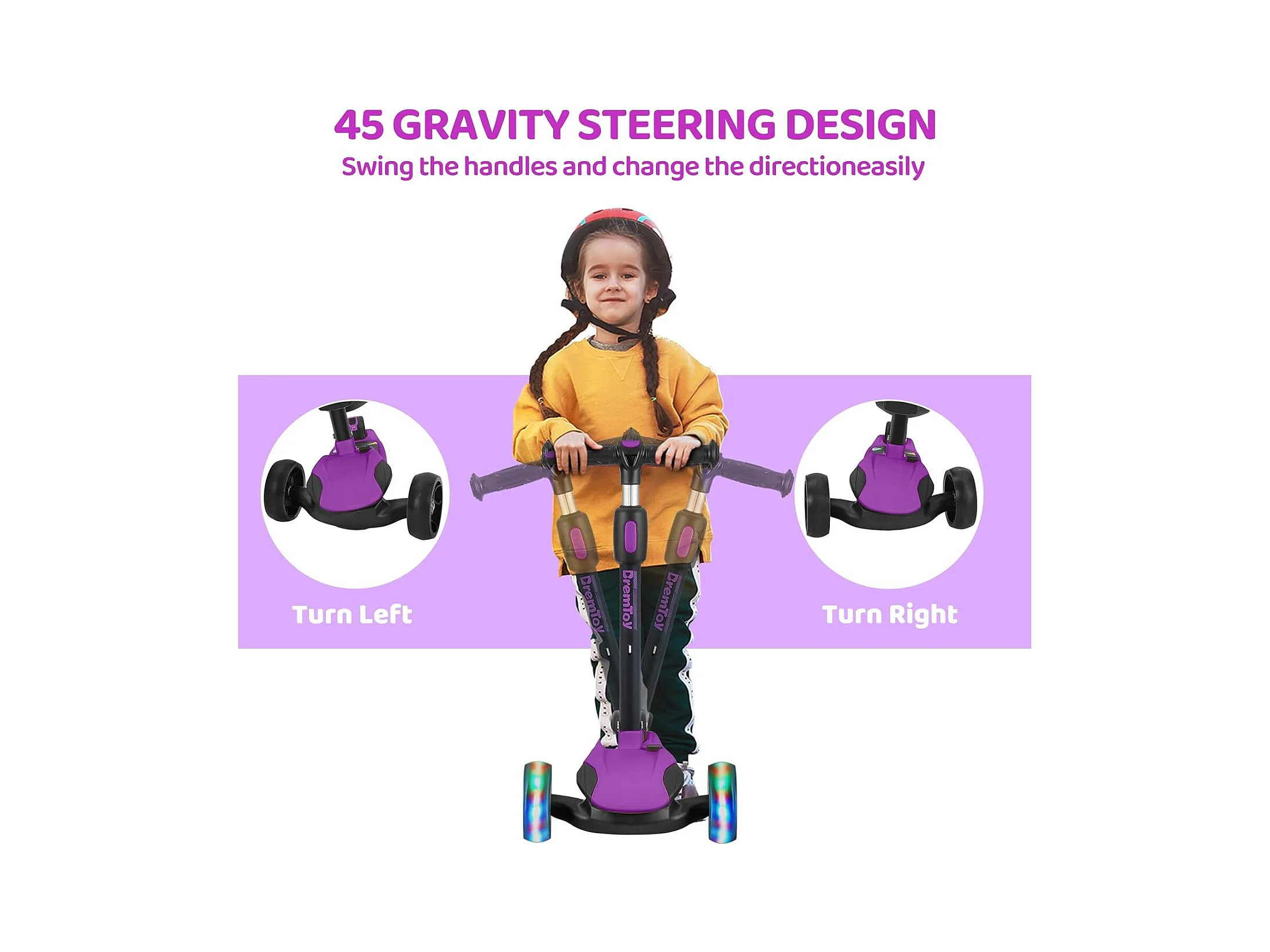 Trottinette pour Enfants BremToy - Trottinette avec Guidon Réglable en Hauteur et Roues LED