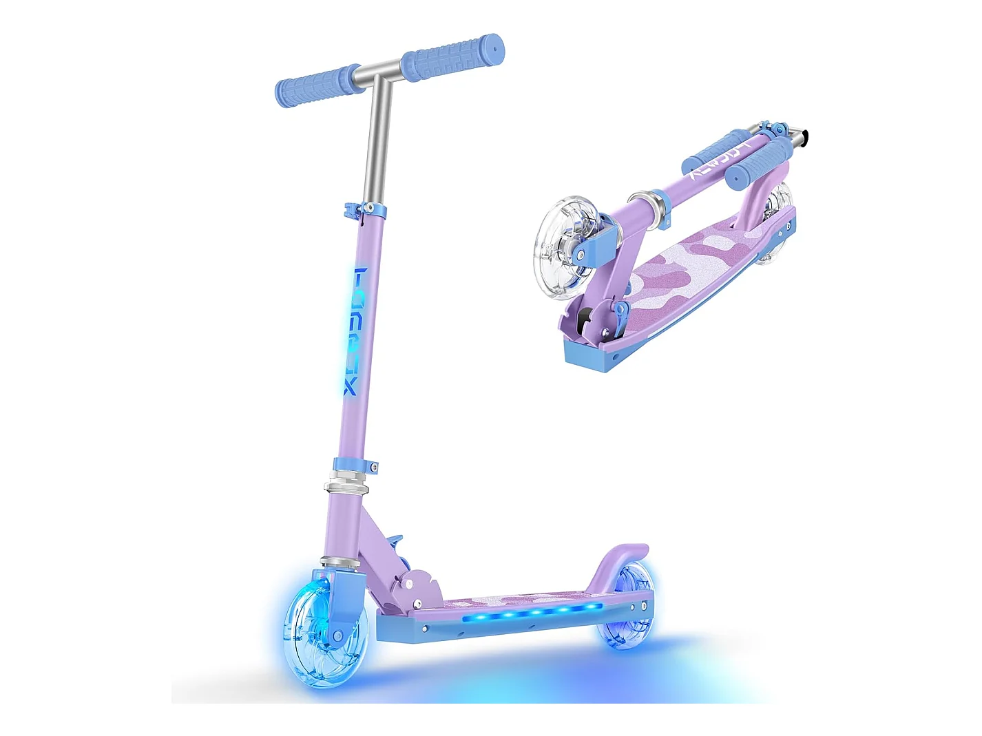 Trottinette Enfant YOLEO avec Roues LED, 4 Positions Réglables en Hauteur, Guidon Pliable, à partir de 3 Ans