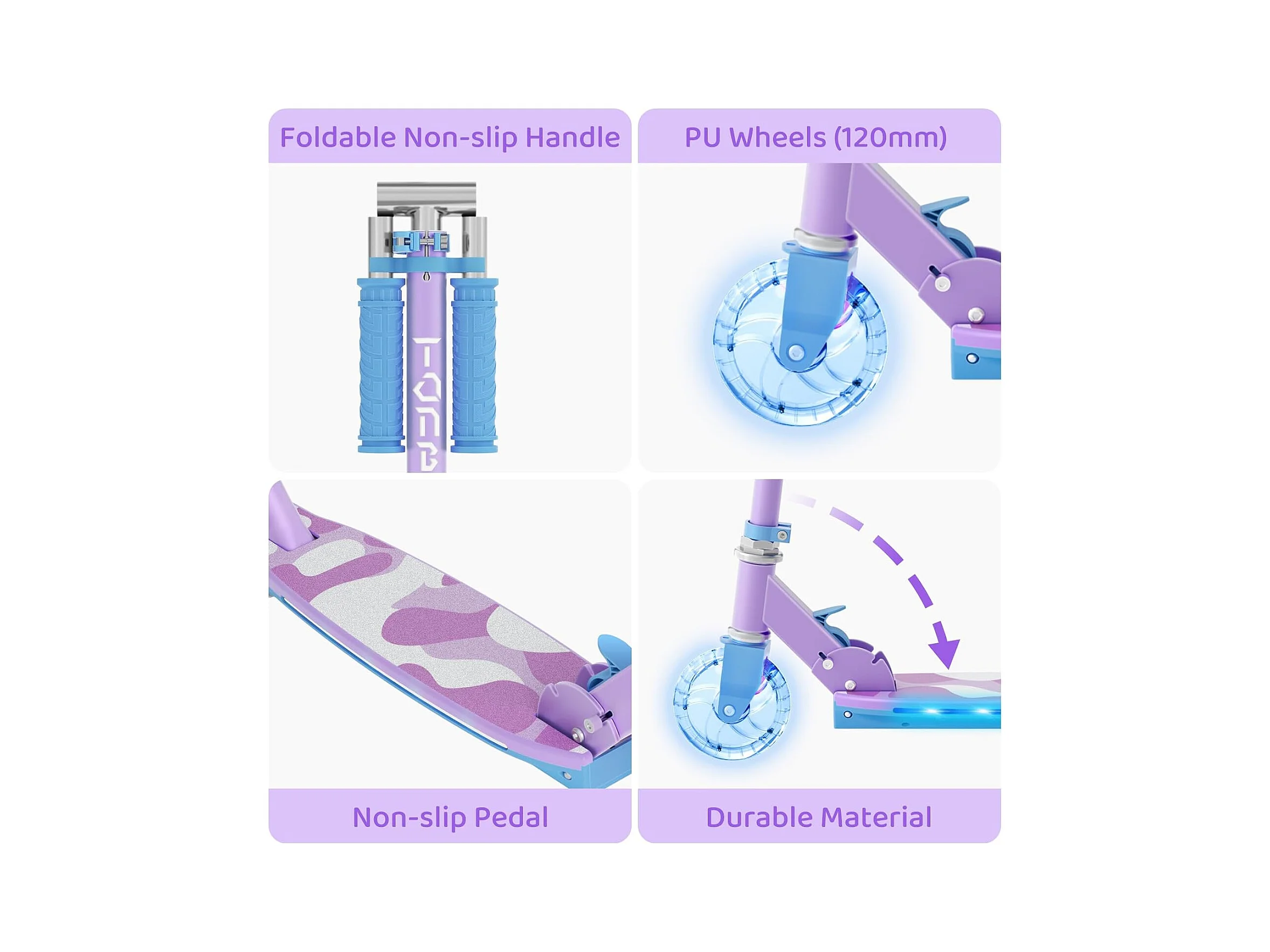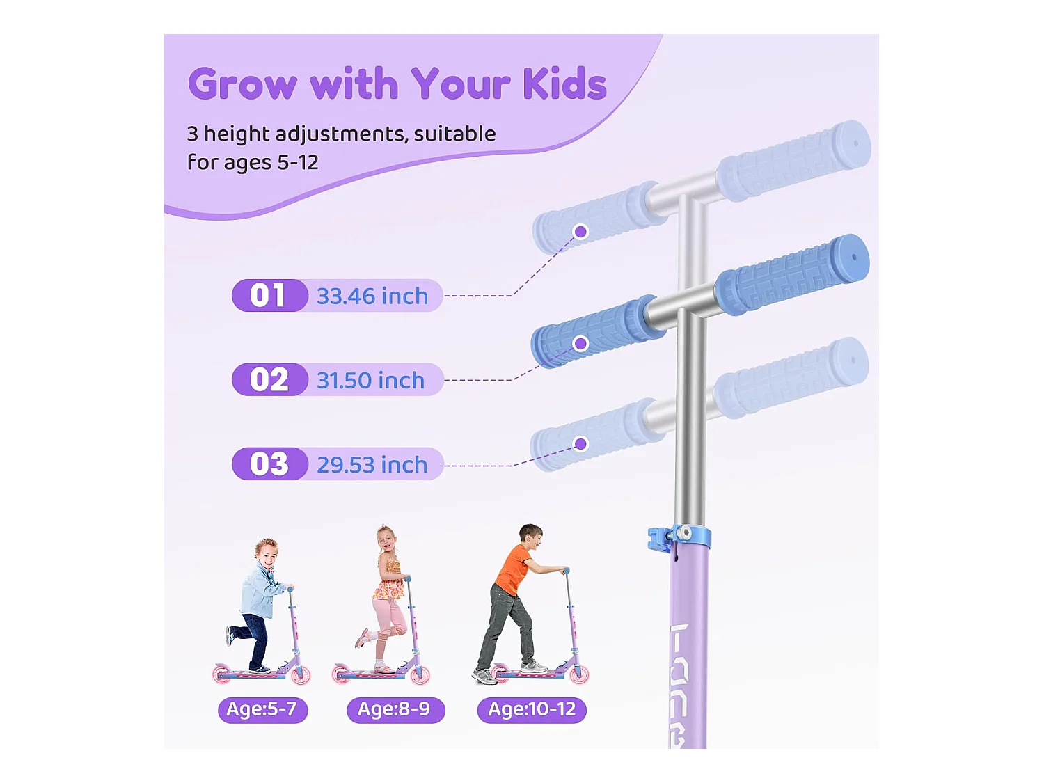 Trottinette Enfant TONBUX avec 2 Roues Lumineuses, Potence et Plateforme, 3 Poignées Réglables en Hauteur, Légère, pour 5-12 Ans
