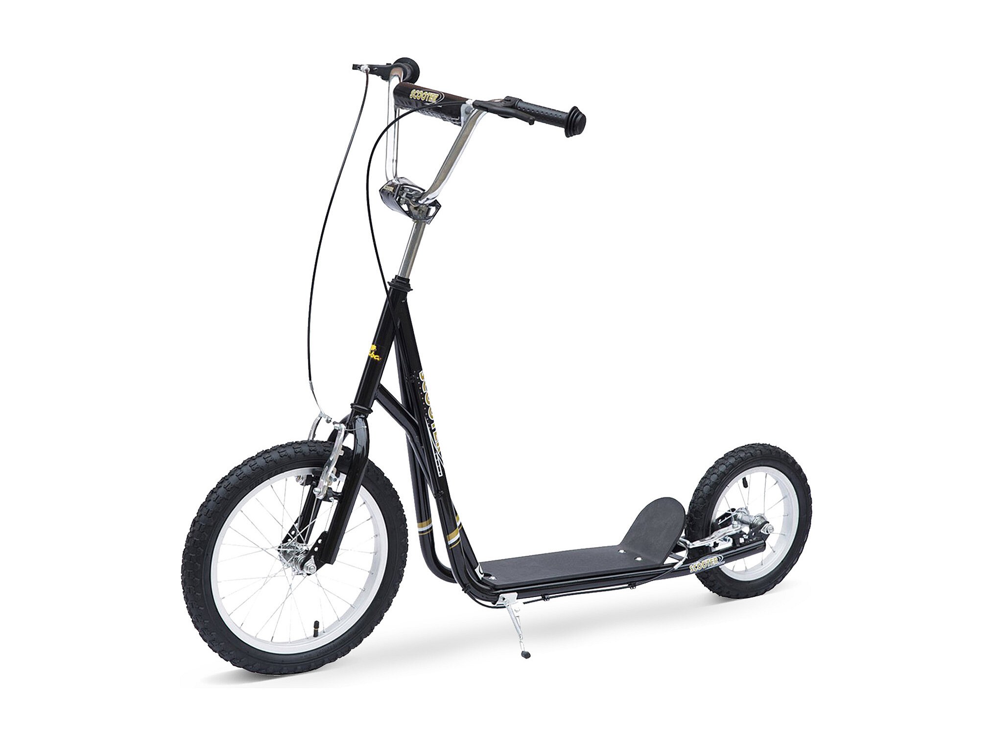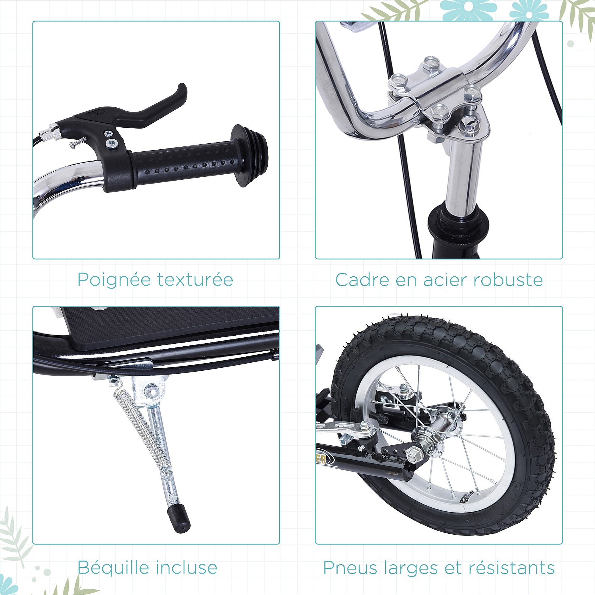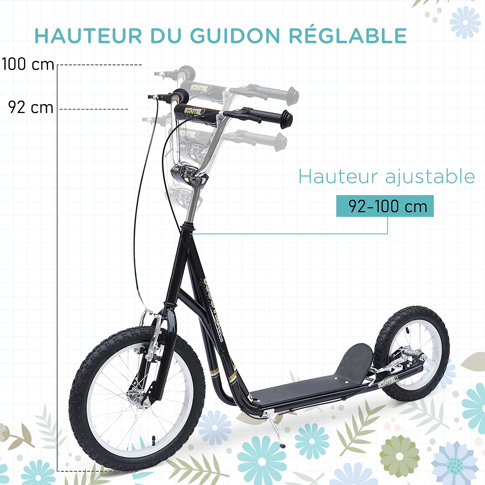 Trottinette patinette enfant à partir de 5 ans grands pneus guidon réglable poignées freins et béquille acier noir