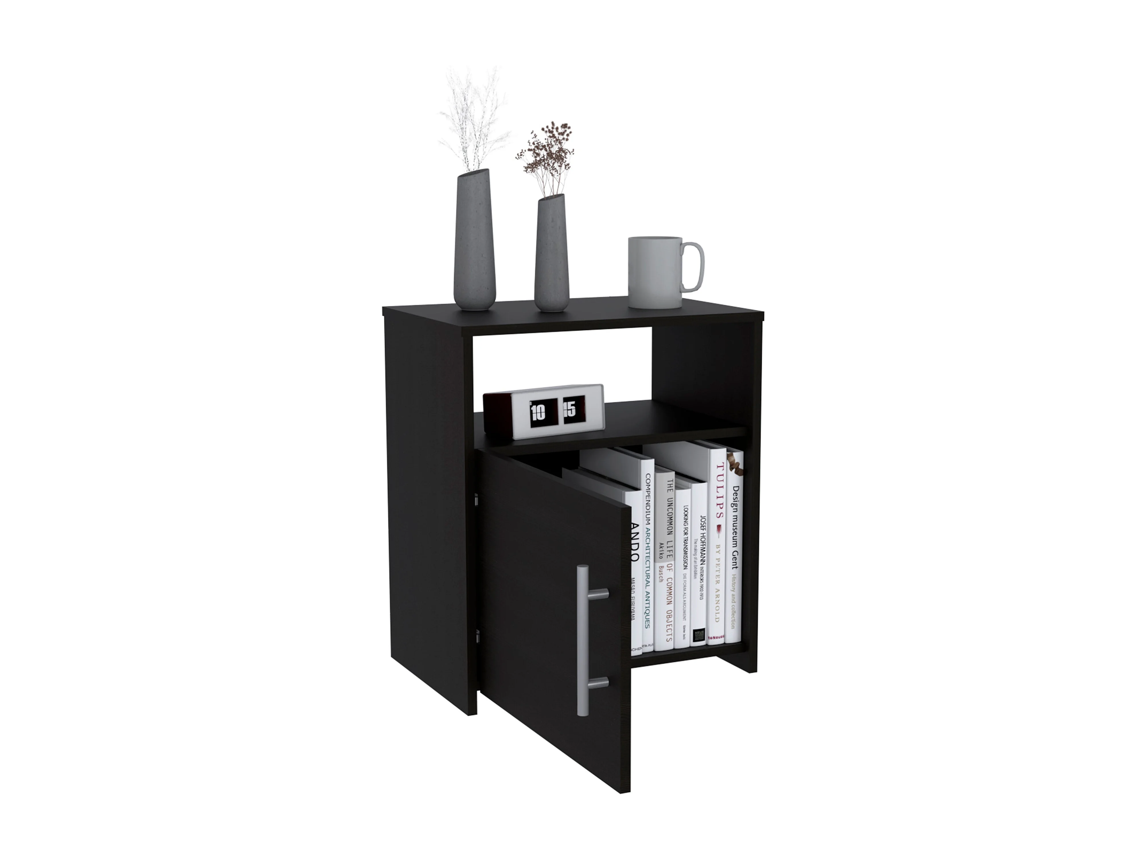 TUHOME Meuble Table de Chevet Bristol, Un Compartiment, Surface Supérieure, Couleur Noire.