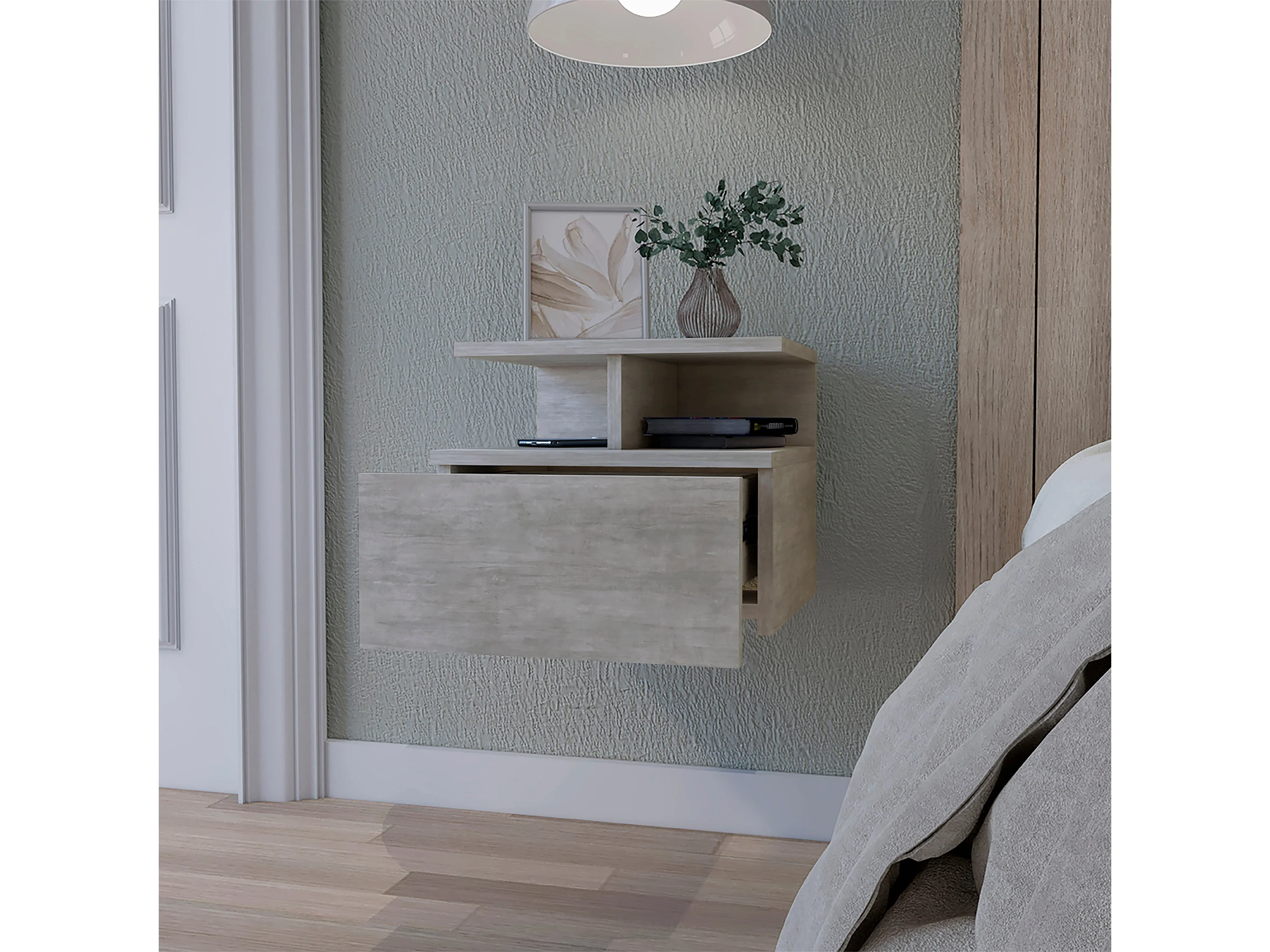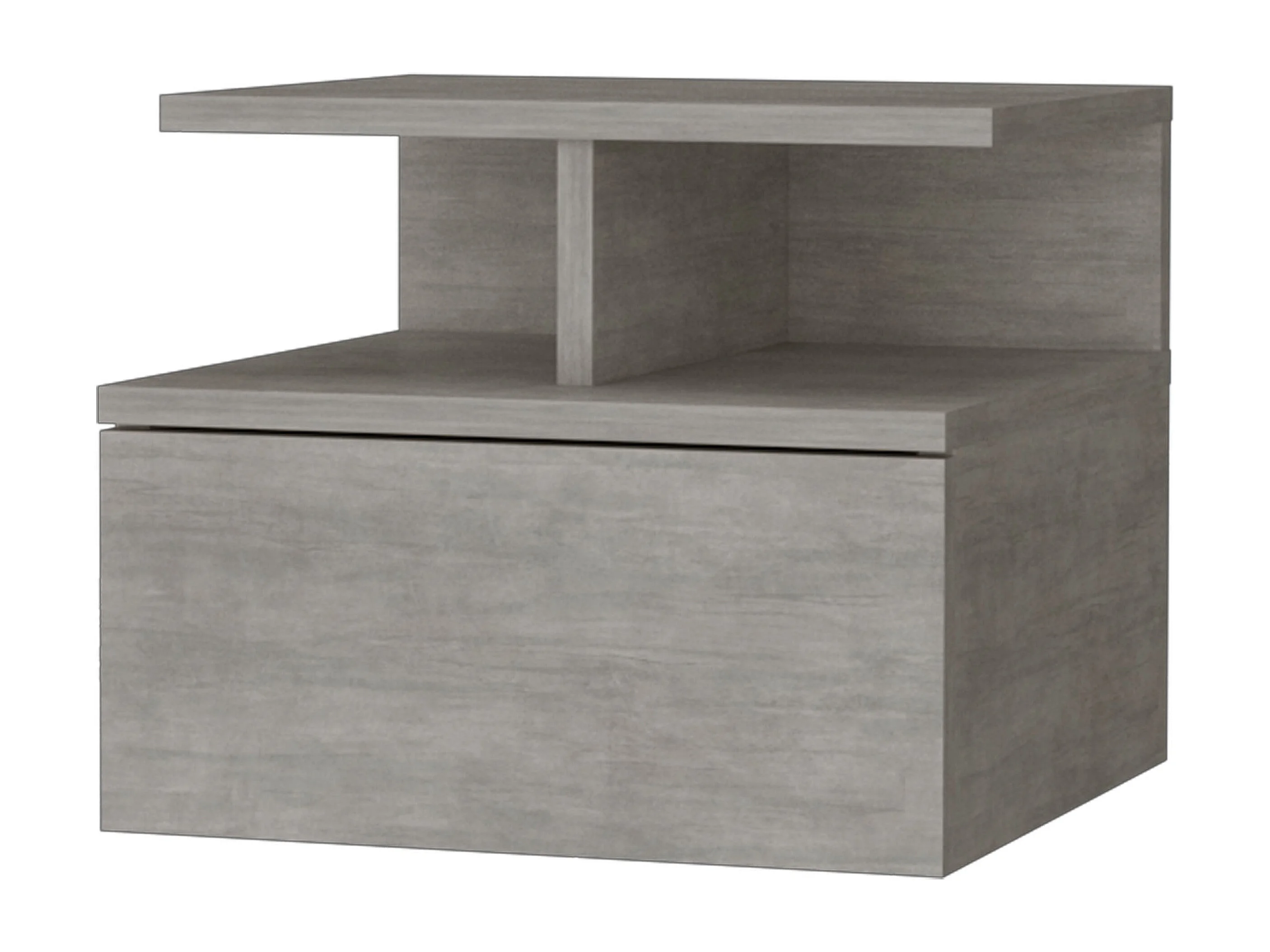 TUHOME Table de Nuit Murale Augusta avec Étagère à 2 Niveaux et 1 Tiroir, Gris