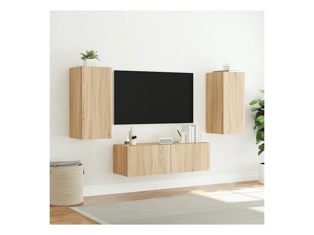 Ugo Gianluca Meuble TV muraux 3 pcs avec lumières LED chêne sonoma