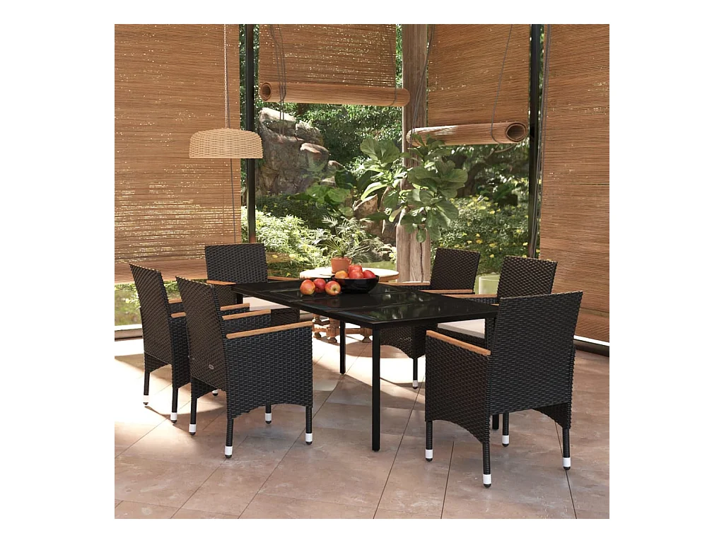 Union Ensemble à manger de jardin avec coussins 7 pcs Noir