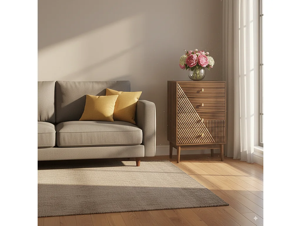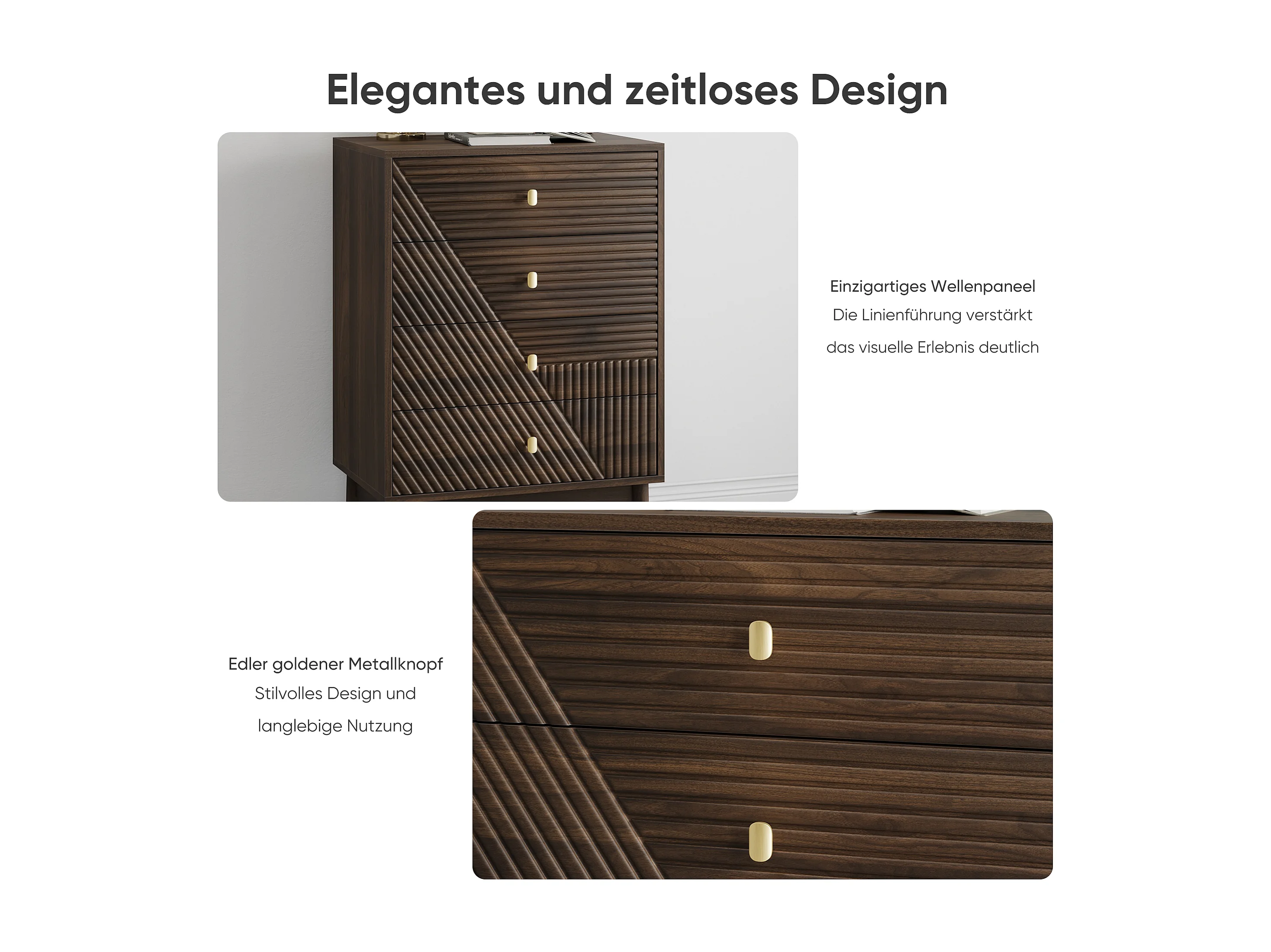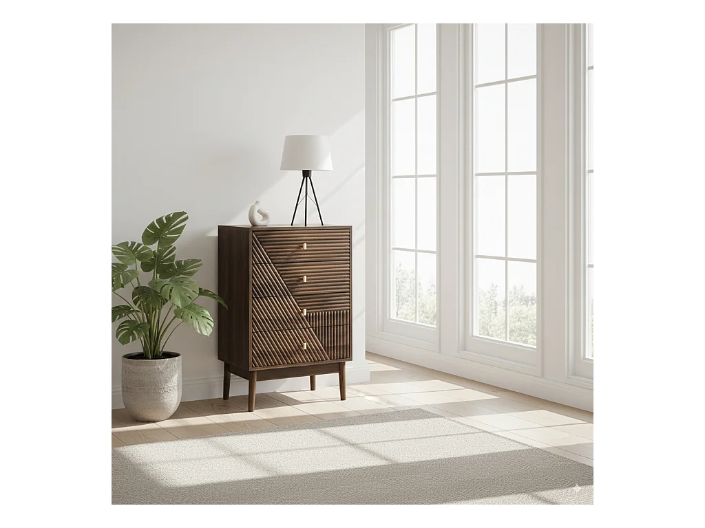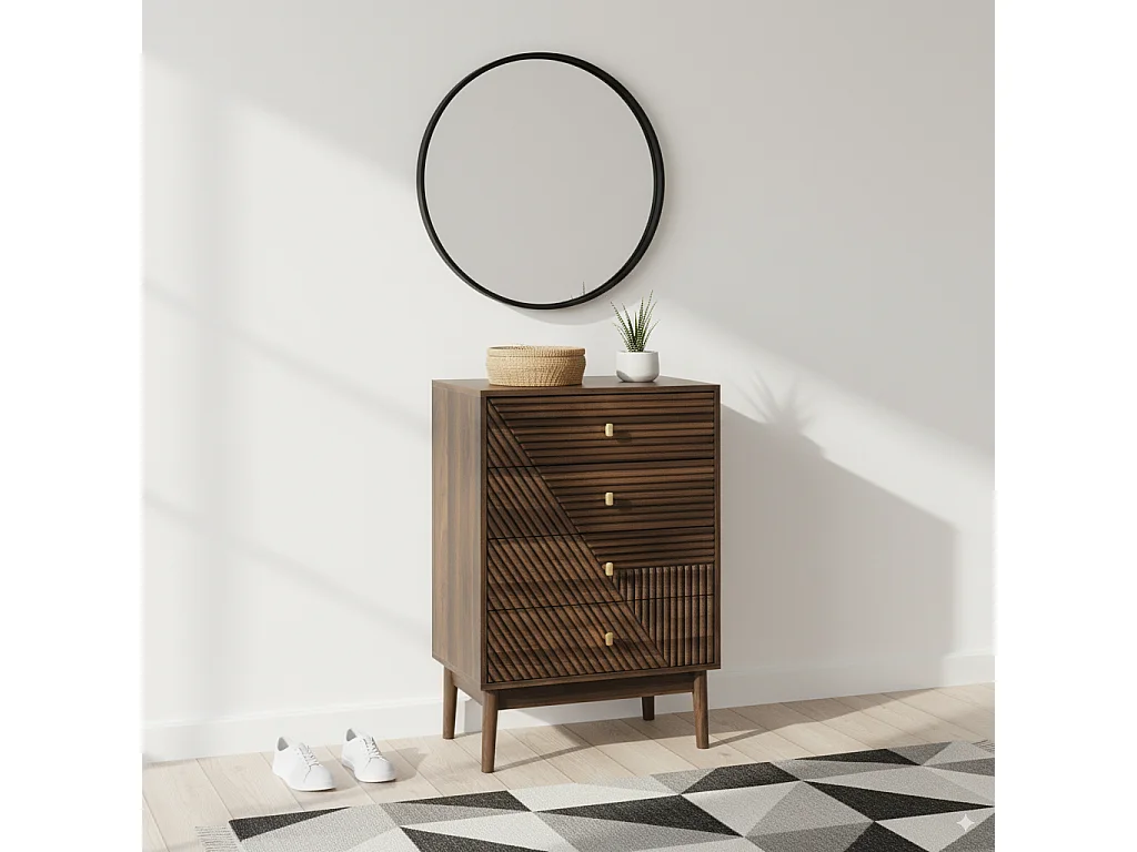 URBAN MEUBLE Commode style rétro 4 tiroirs avec design géométrique