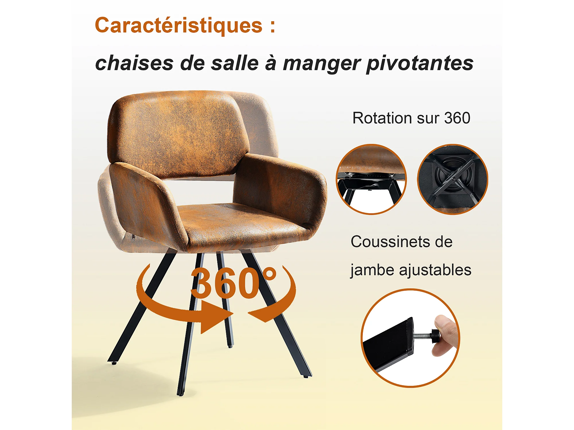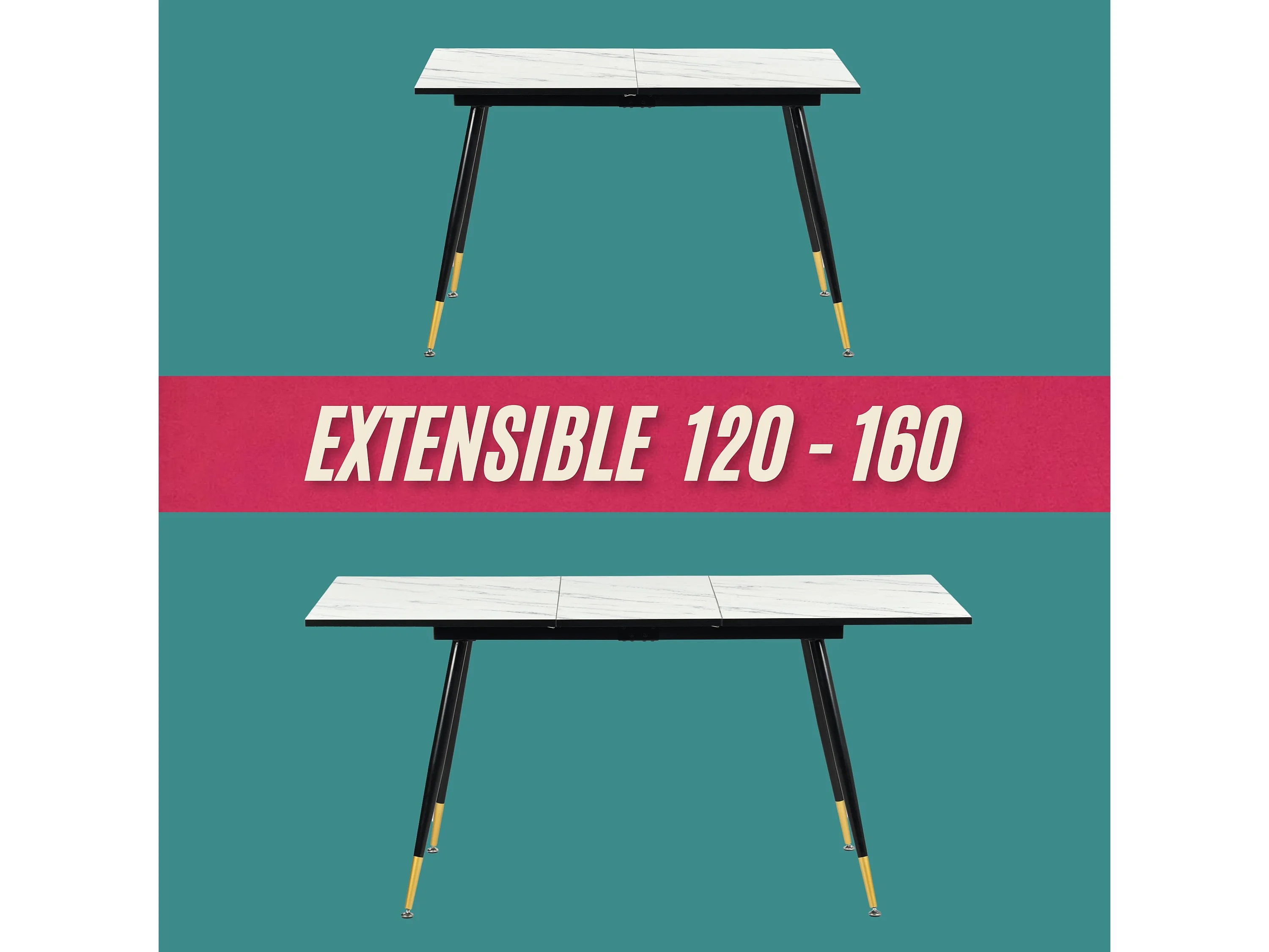 URBAN MEUBLE Ensemble table extensible effet marbre blanc et 4 chaises marron vintage