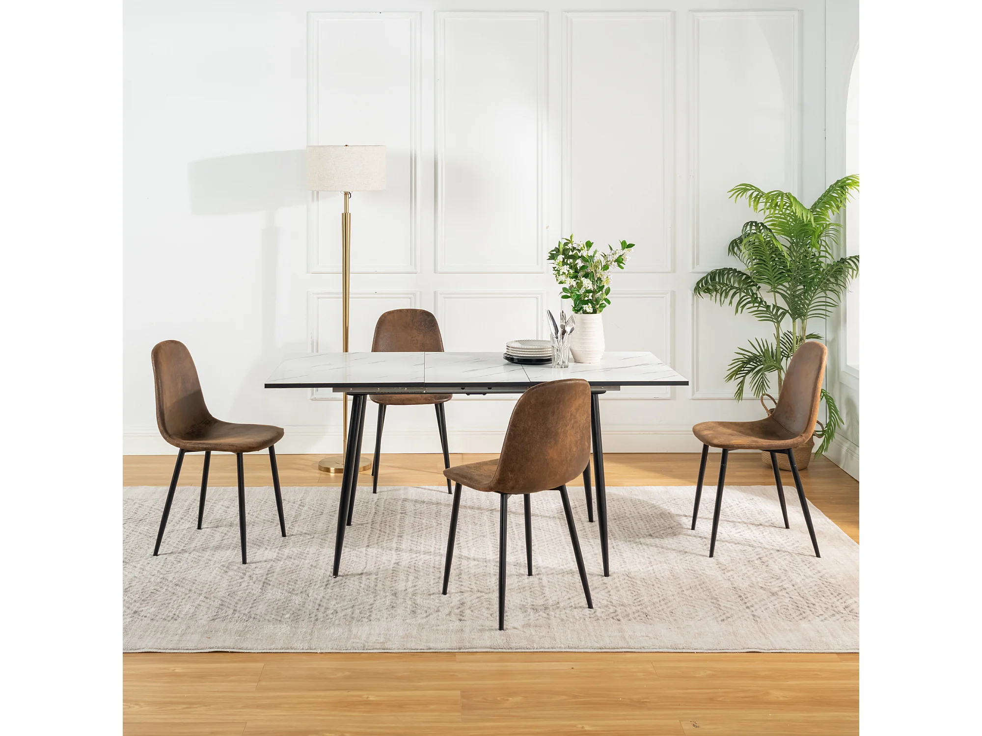 URBAN MEUBLE Ensemble table extensible marbre blanc et 4 chaises suède brun