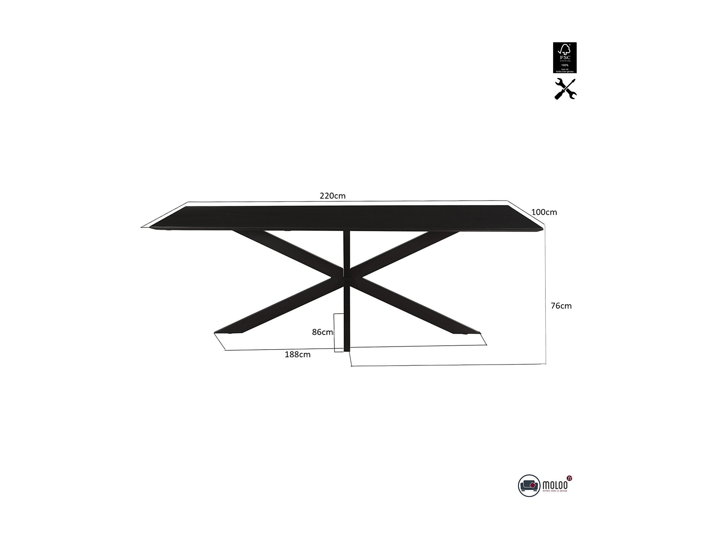 URBAN-Table à manger 8/10 personnes 220 cm en bois massif noir