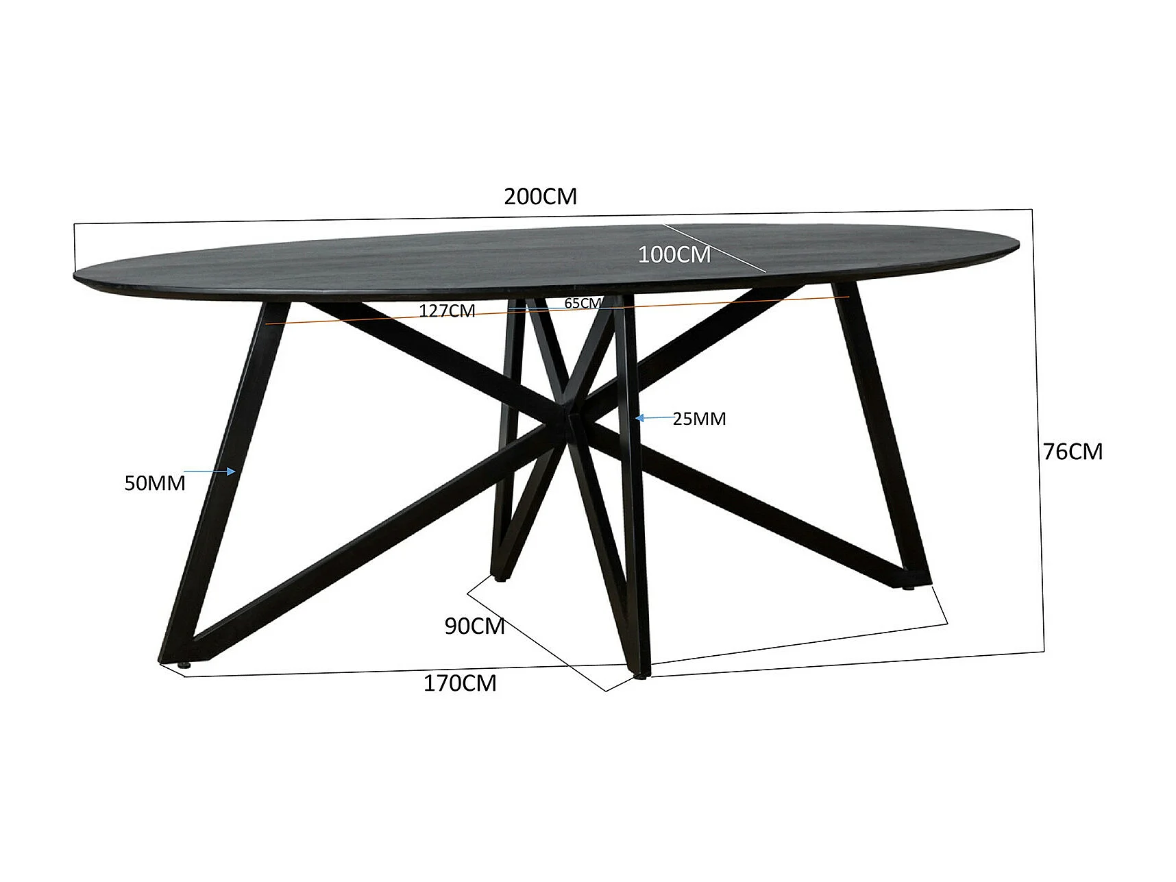URBAN-Table à manger ovale 8 personnes 200 cm en bois massif noir