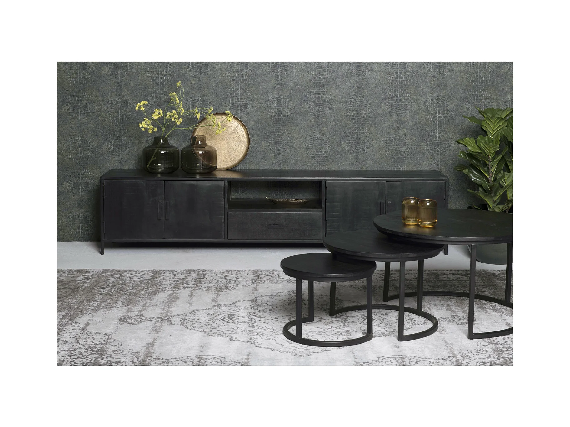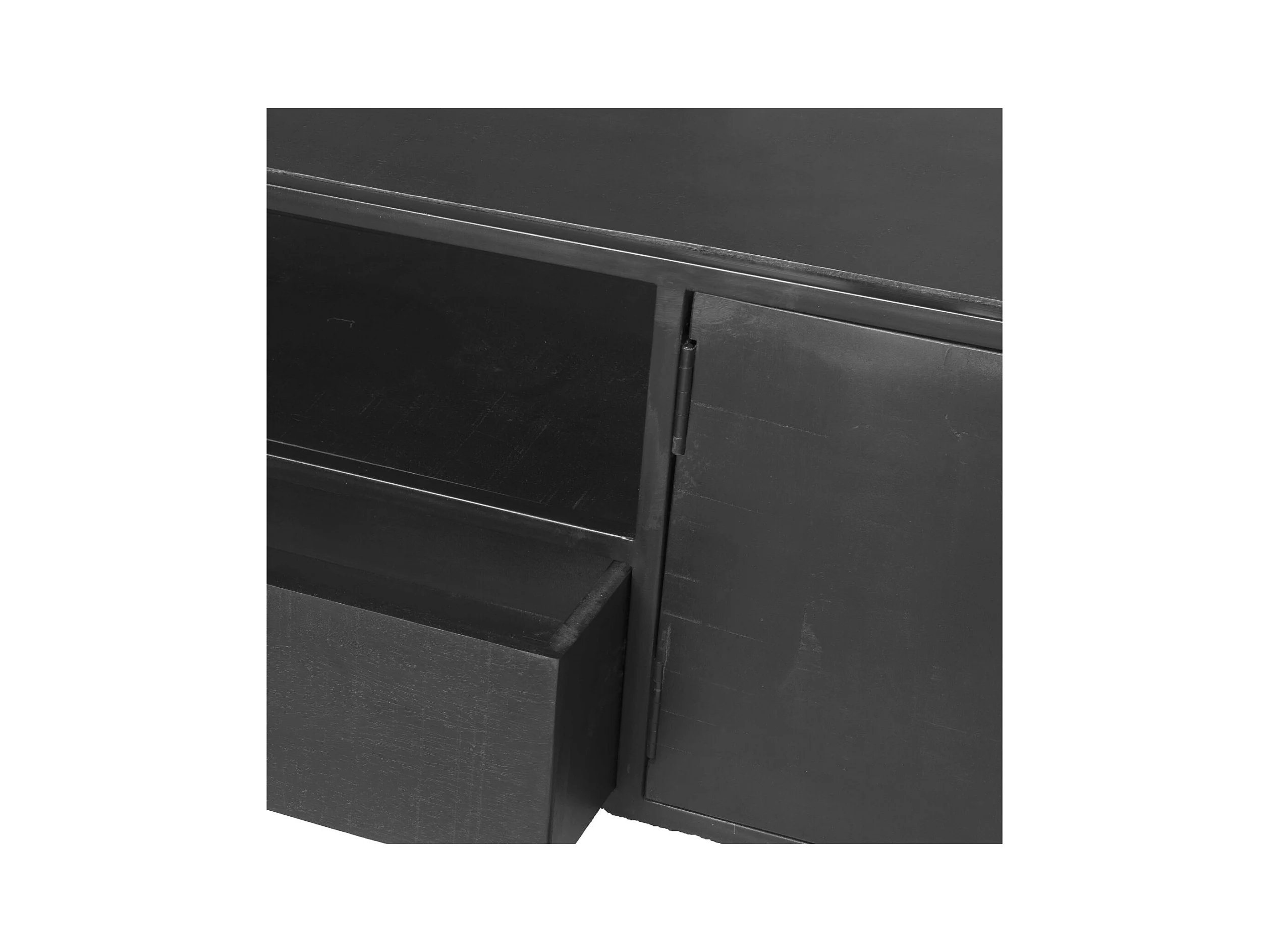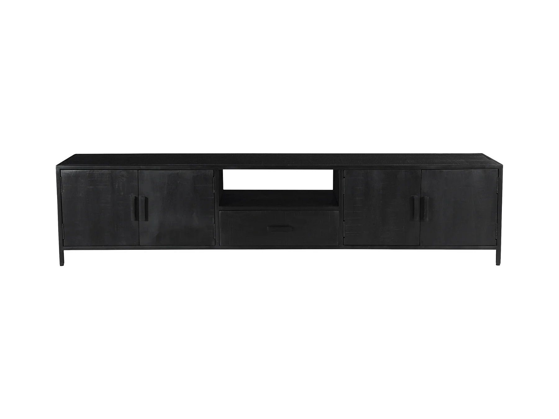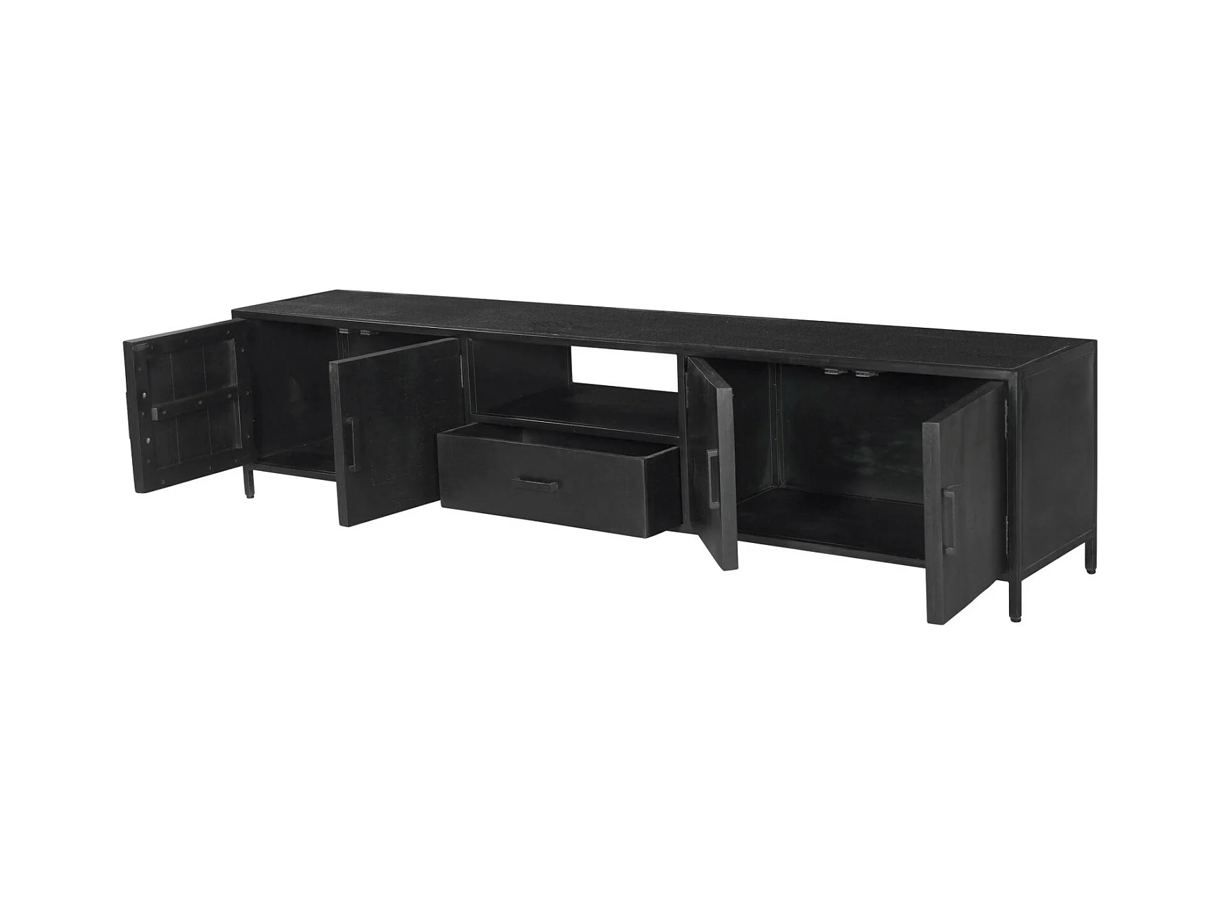 UZES-Meuble TV 220 cm en bois massif noir et métal