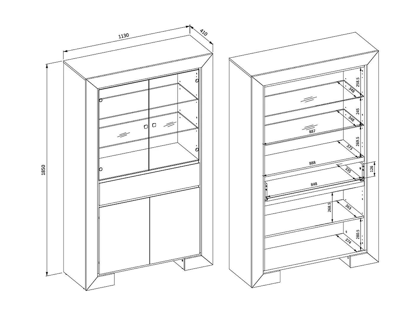 Vaisselier 4 portes 1 tiroir Lucius Bois et Noir