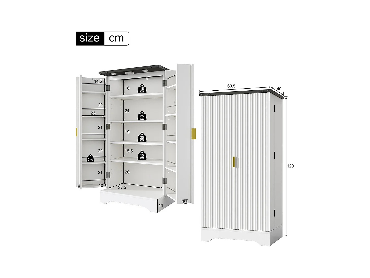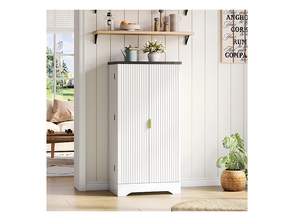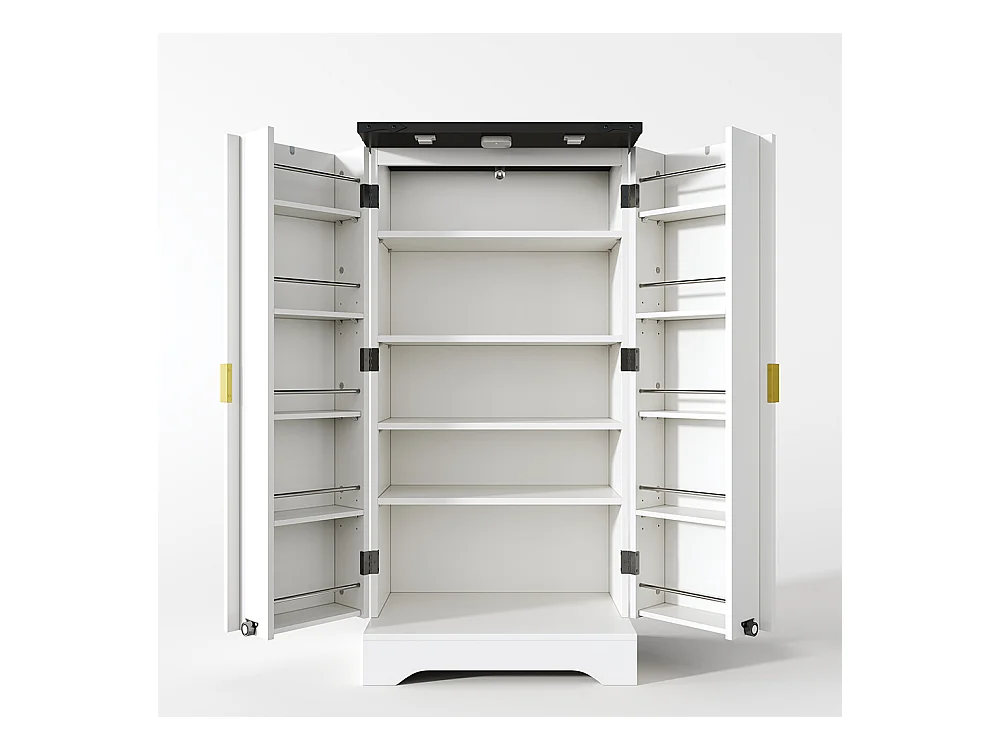 Vaisselier cuisine LED capteur étagère épices spacieuse double porte étagères réglables design moderne blanc