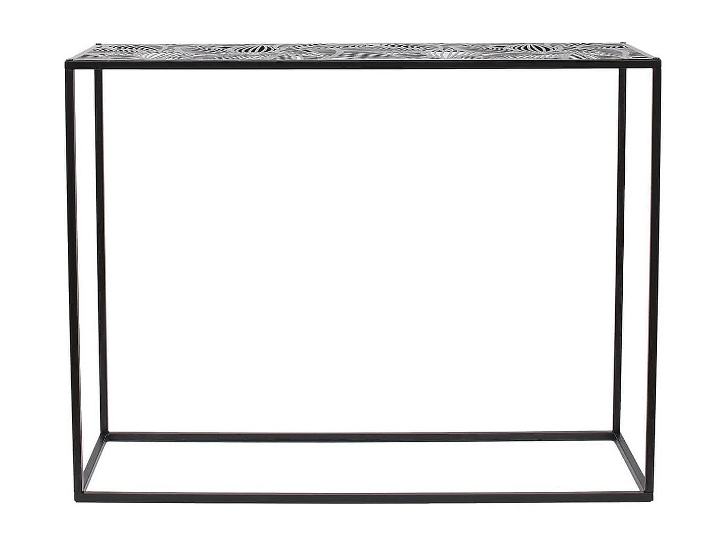 VANIA - Console en Métal Noir Plateau Motifs Feuilles