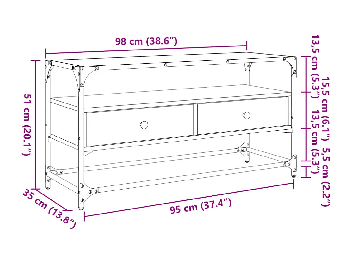 Élie Meuble TV Noir 40x35x17 cm Verre trempé