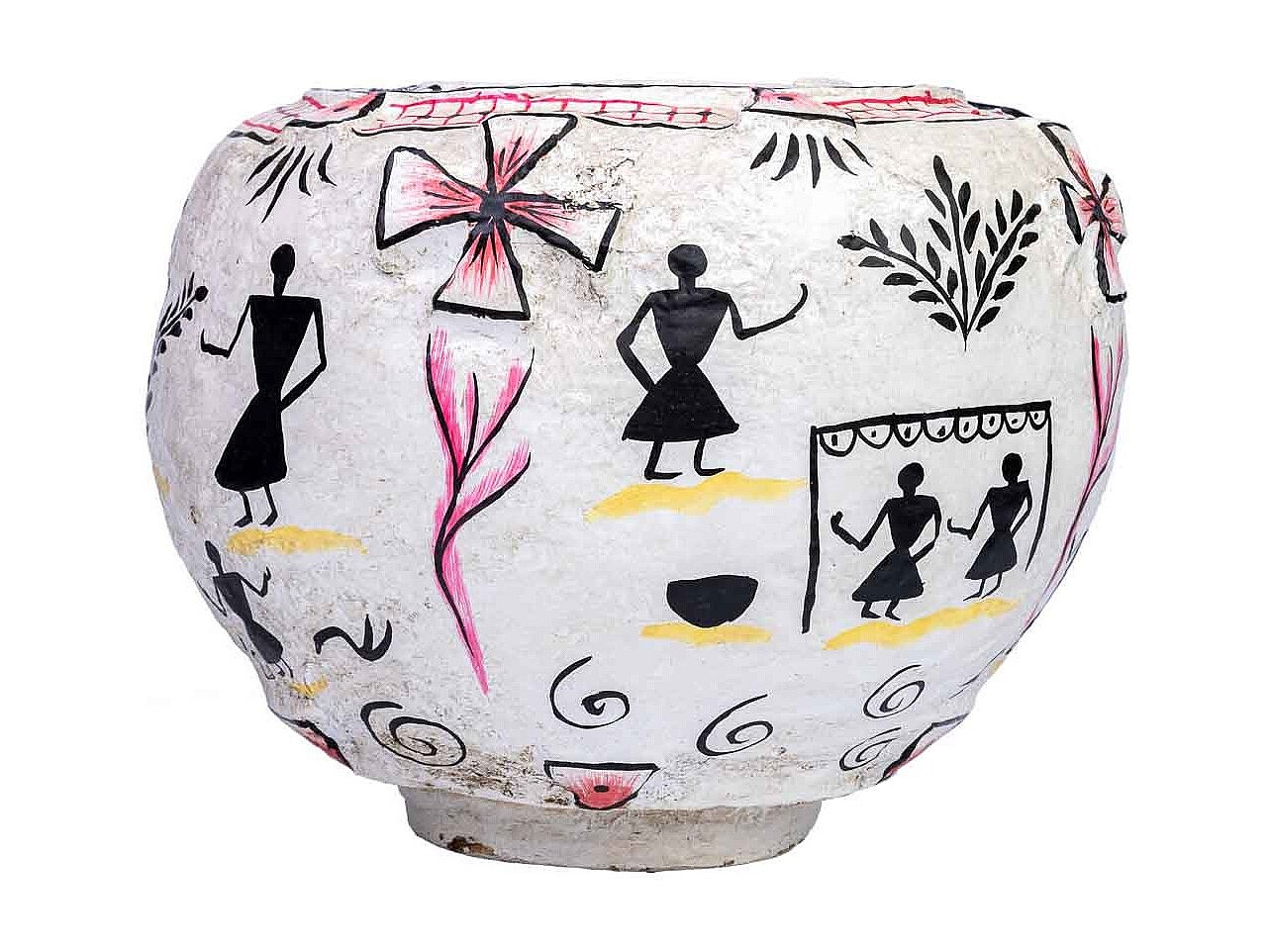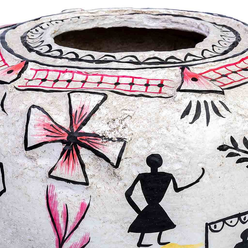 Vase en papier mâché blanc peint à la main 27x27x27h cm
