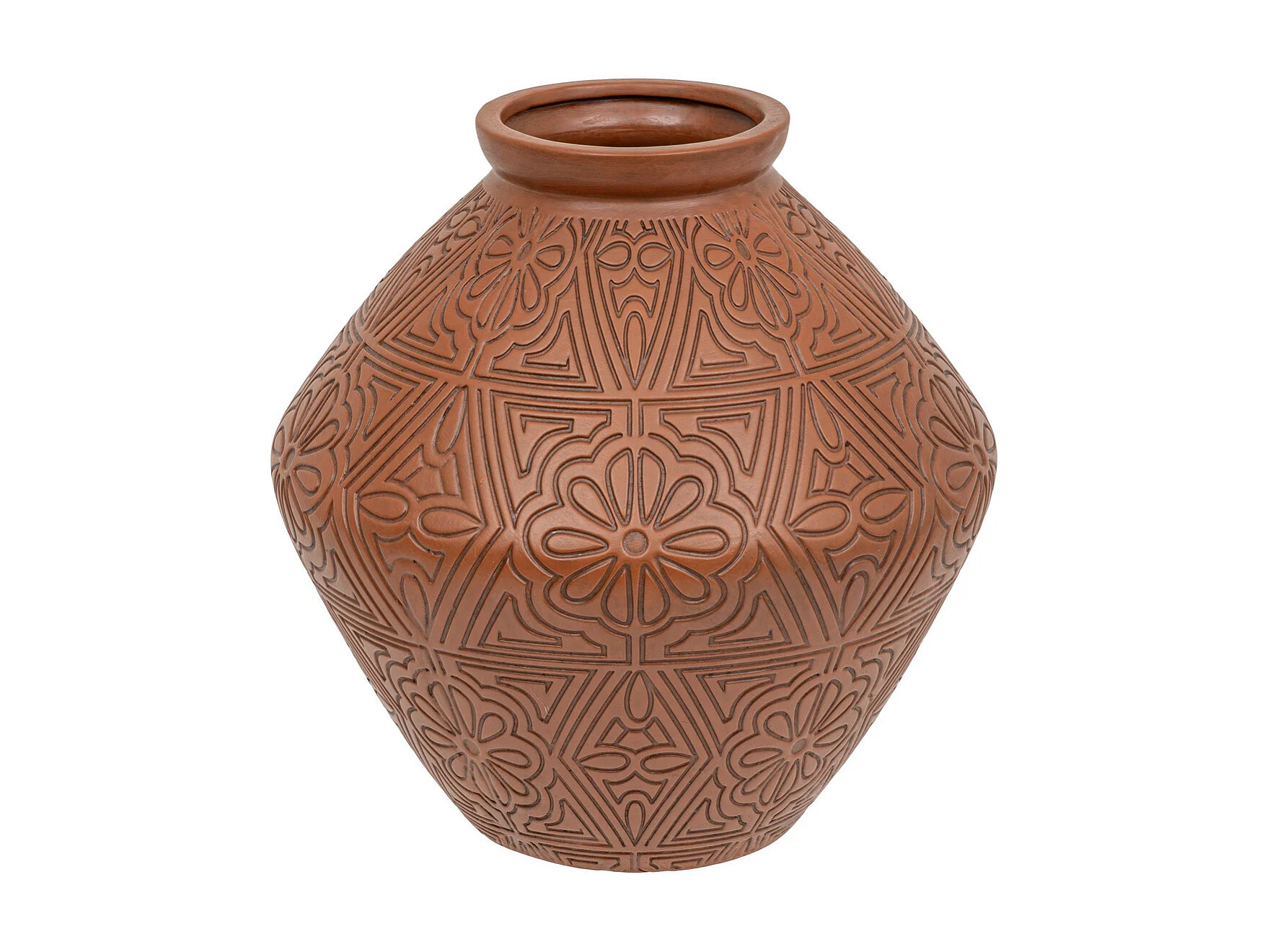 Vase Jarre en céramique Terracotta motifs sculptés H 35 cm