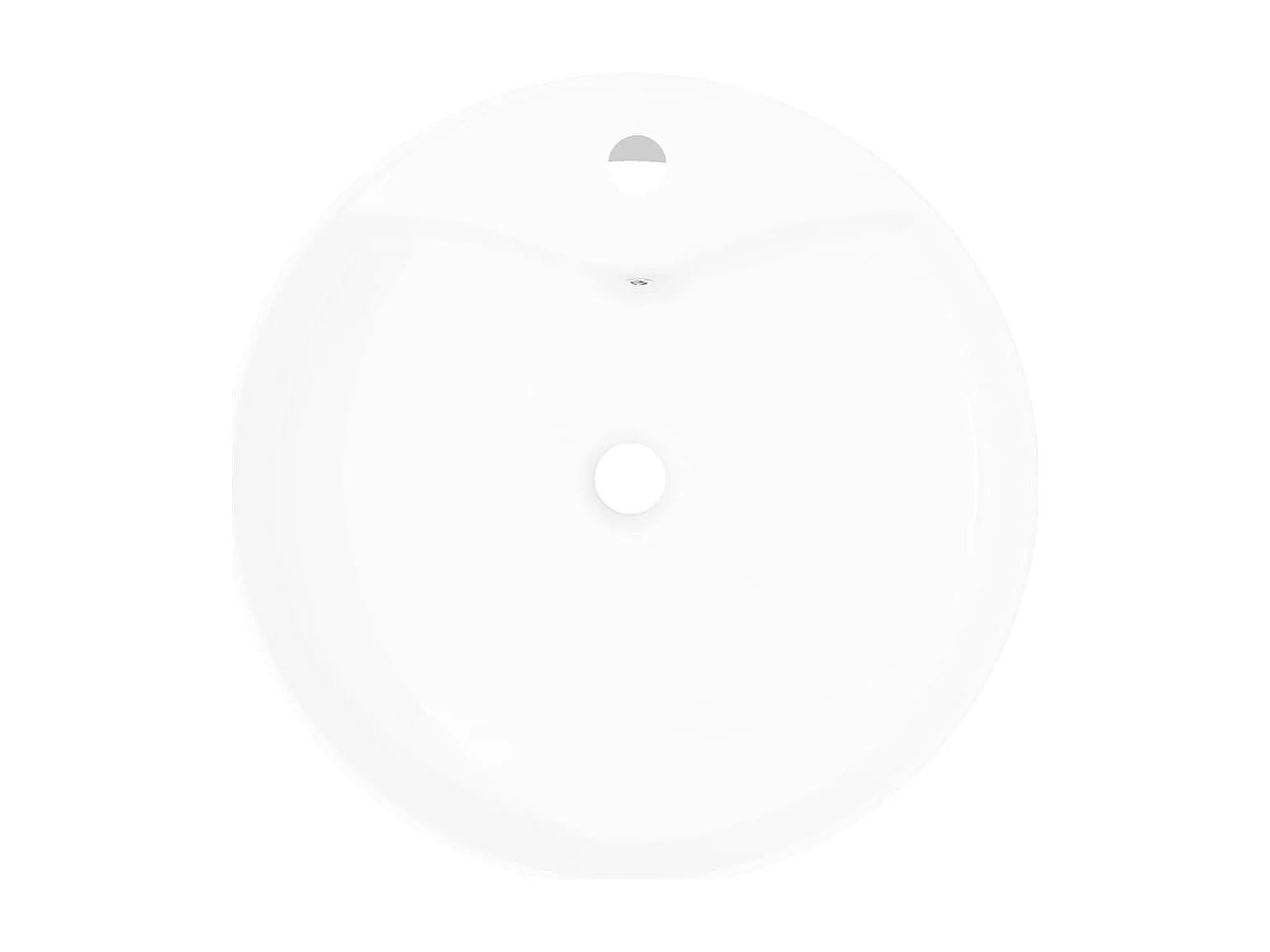 Vasque à poser Lavabo | Bac à laver à trou de trop-plein/robinet céramique Blanc Rond
