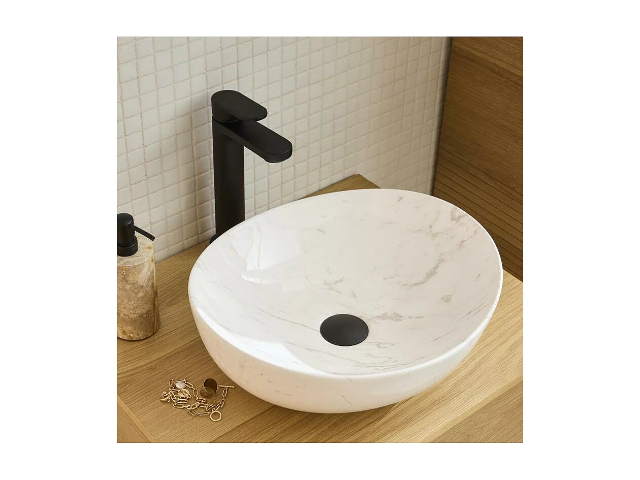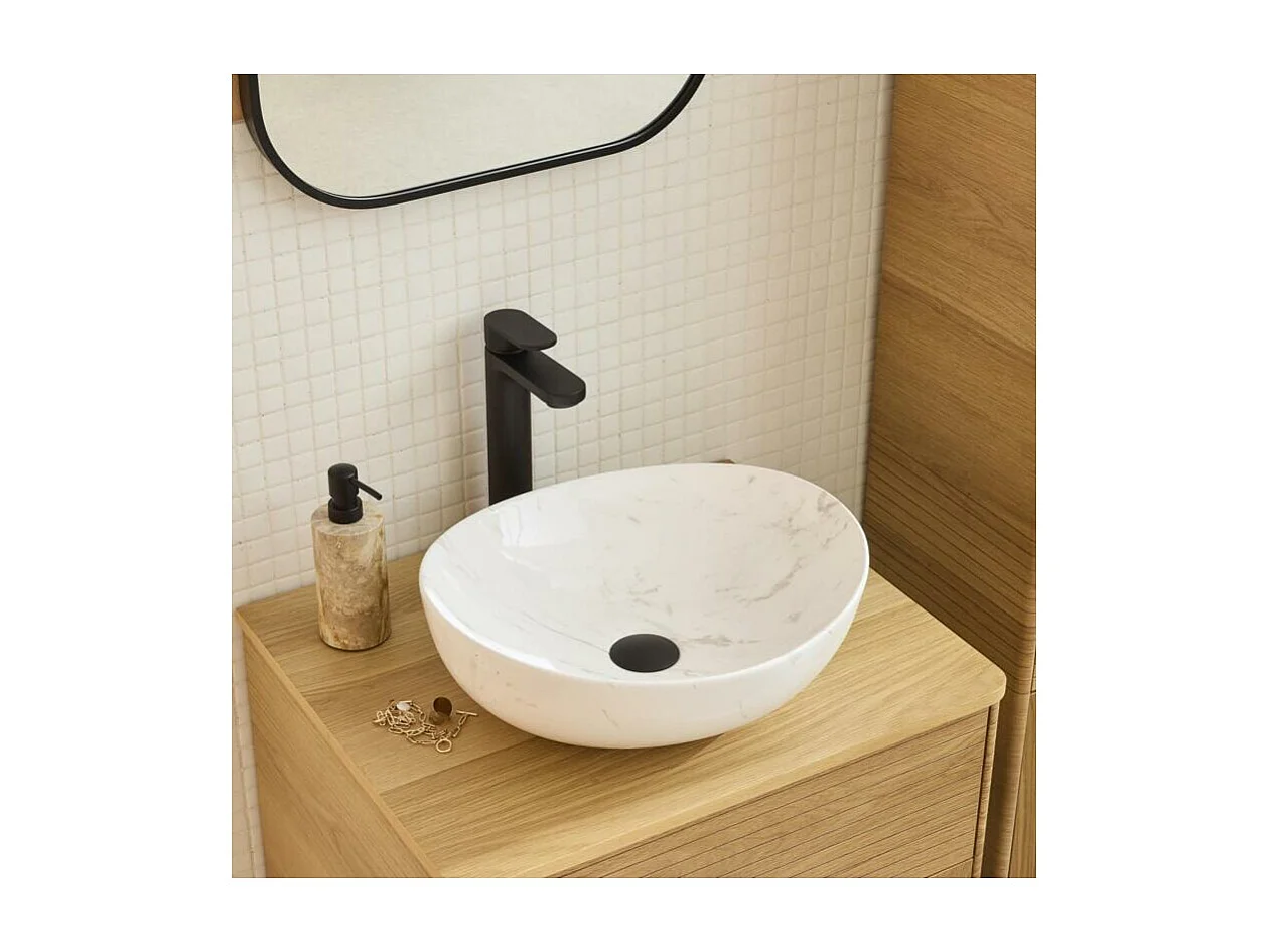 Vasque à poser ovale en céramique effet marbre 48x37cm