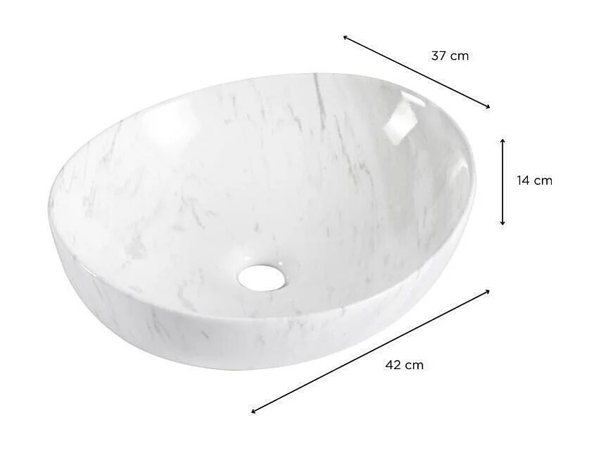 Vasque à poser ovale en céramique effet marbre 46x37cm