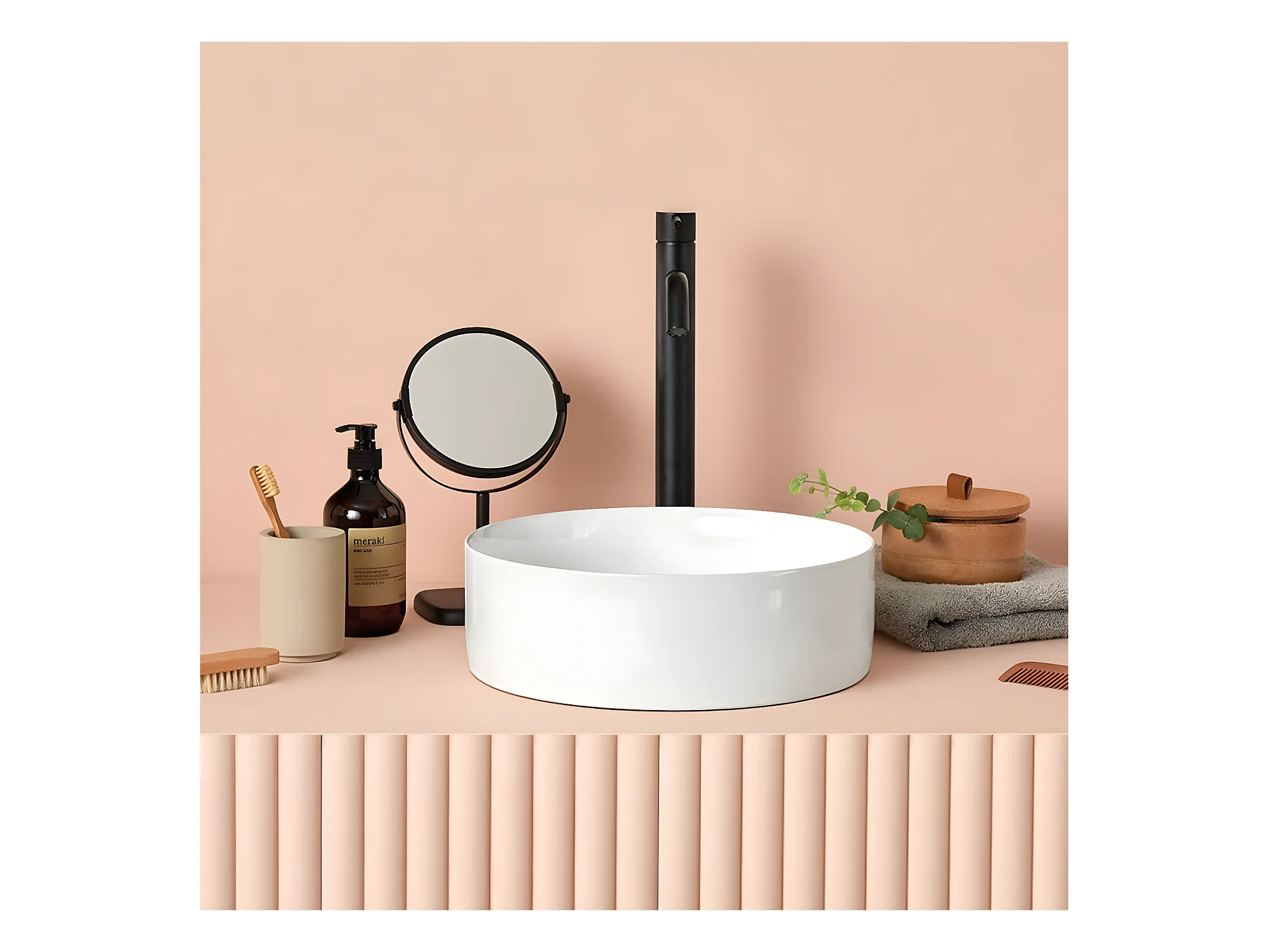 Vasque à poser ronde en céramique MARSALA Ø35.5 cm Blanc brillant