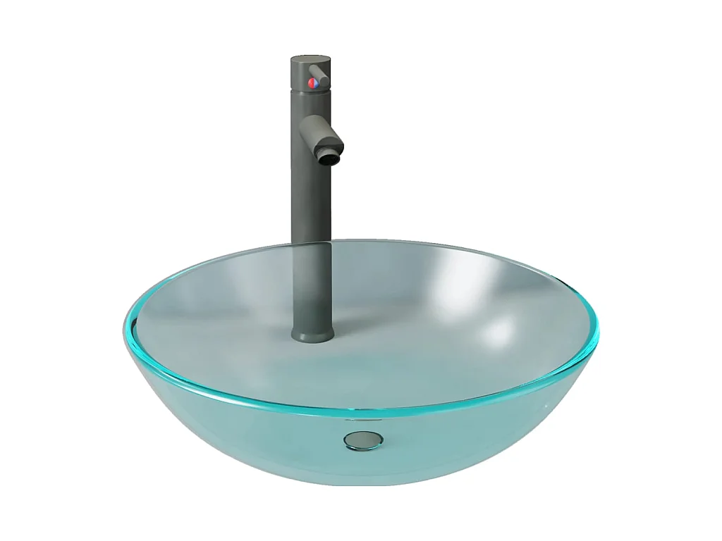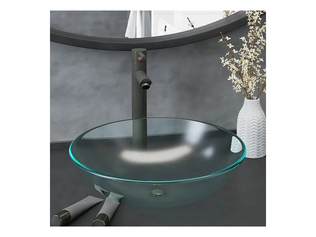 Vasque de bain avec robinet et drain à poussoir Verre trempé WVGQ2934