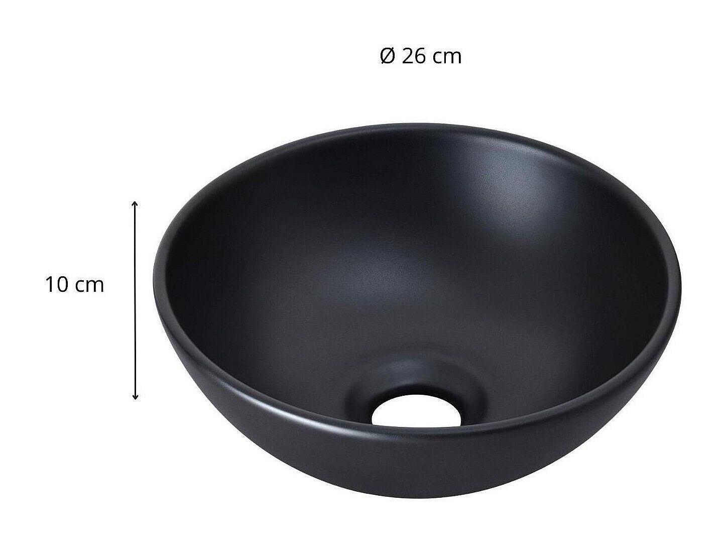 Vasque lave-mains à poser ronde en céramique noir 26cm